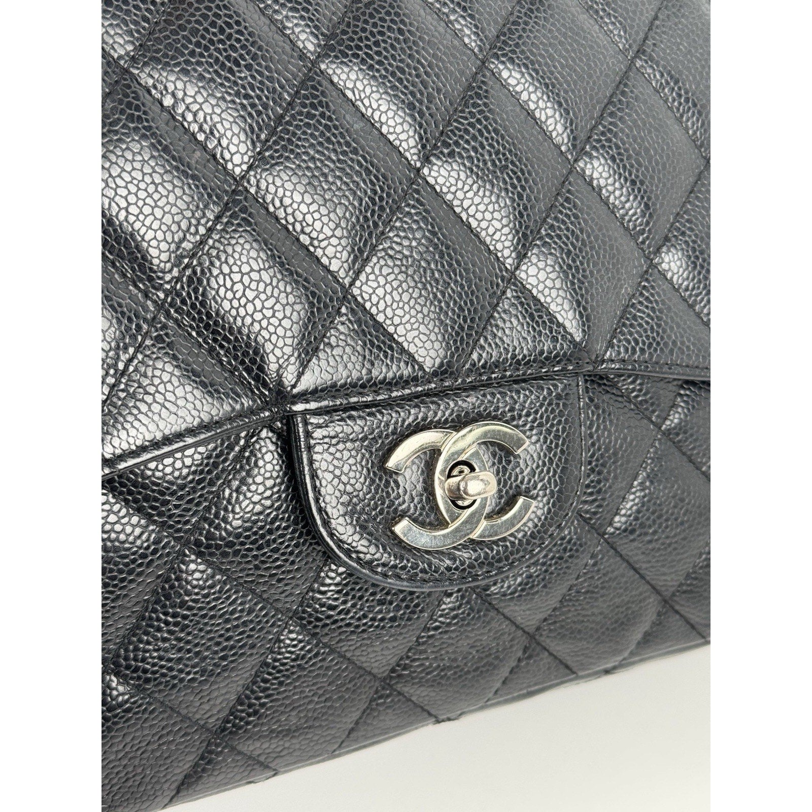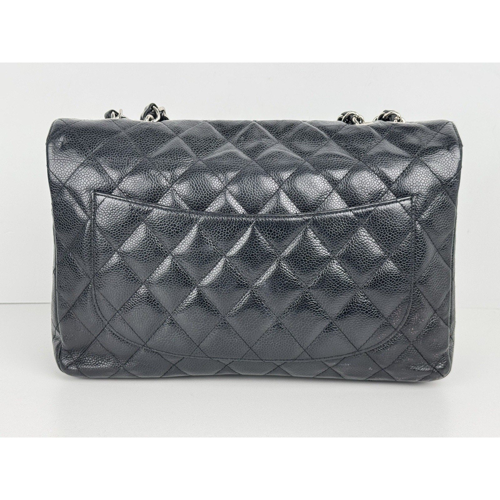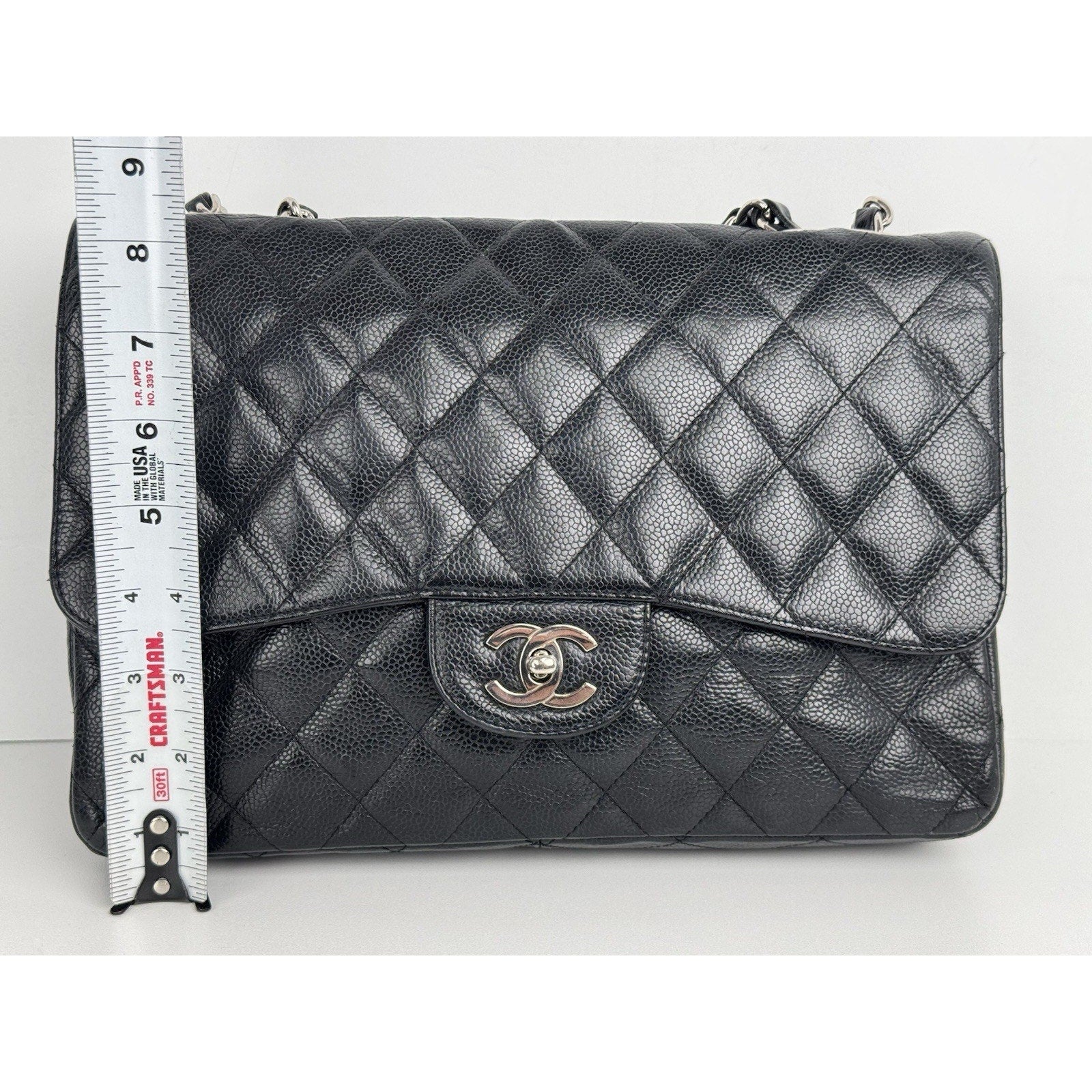 Chanel Jumbo Classic Single Flap Bag in Black Caviar Leather w Silver Hardware