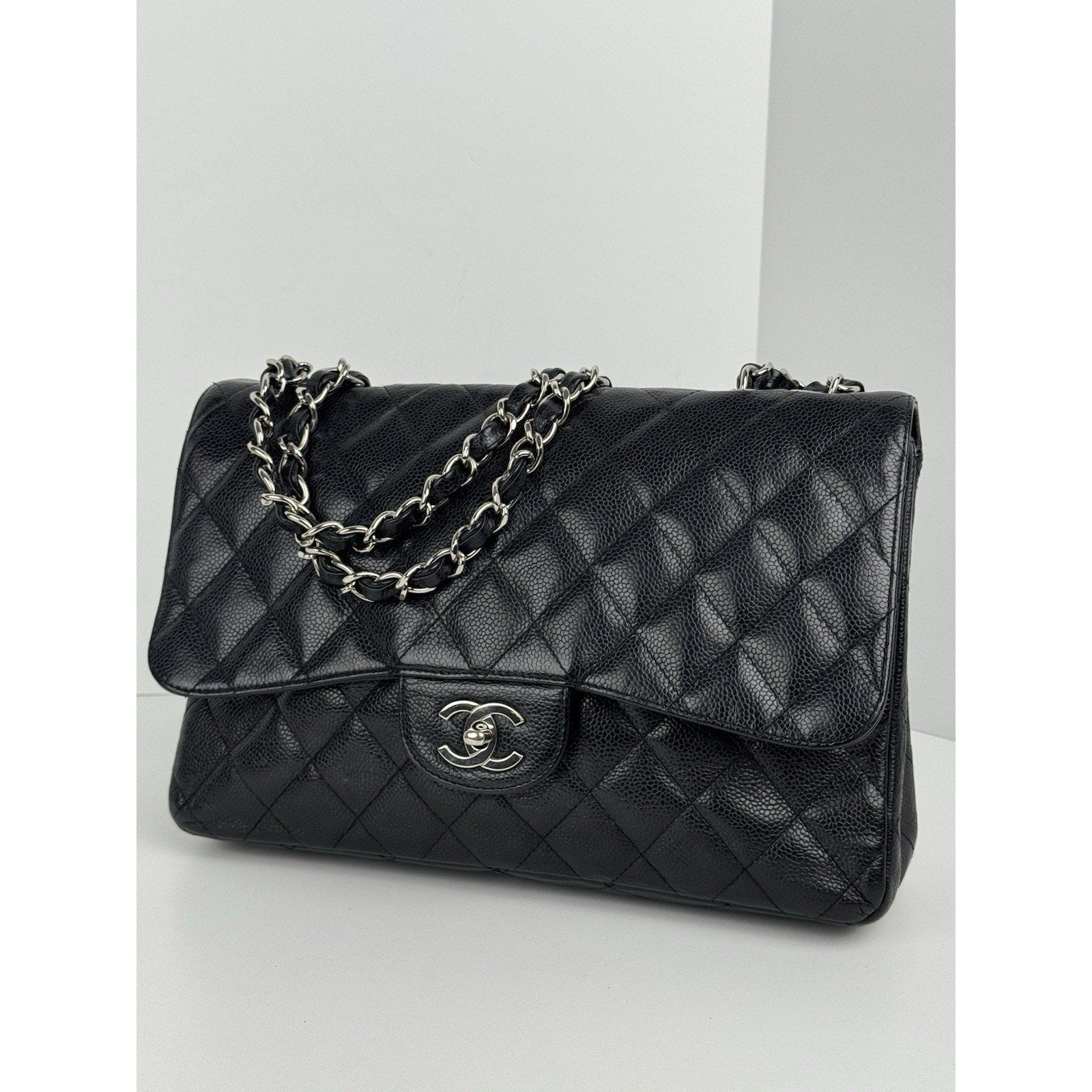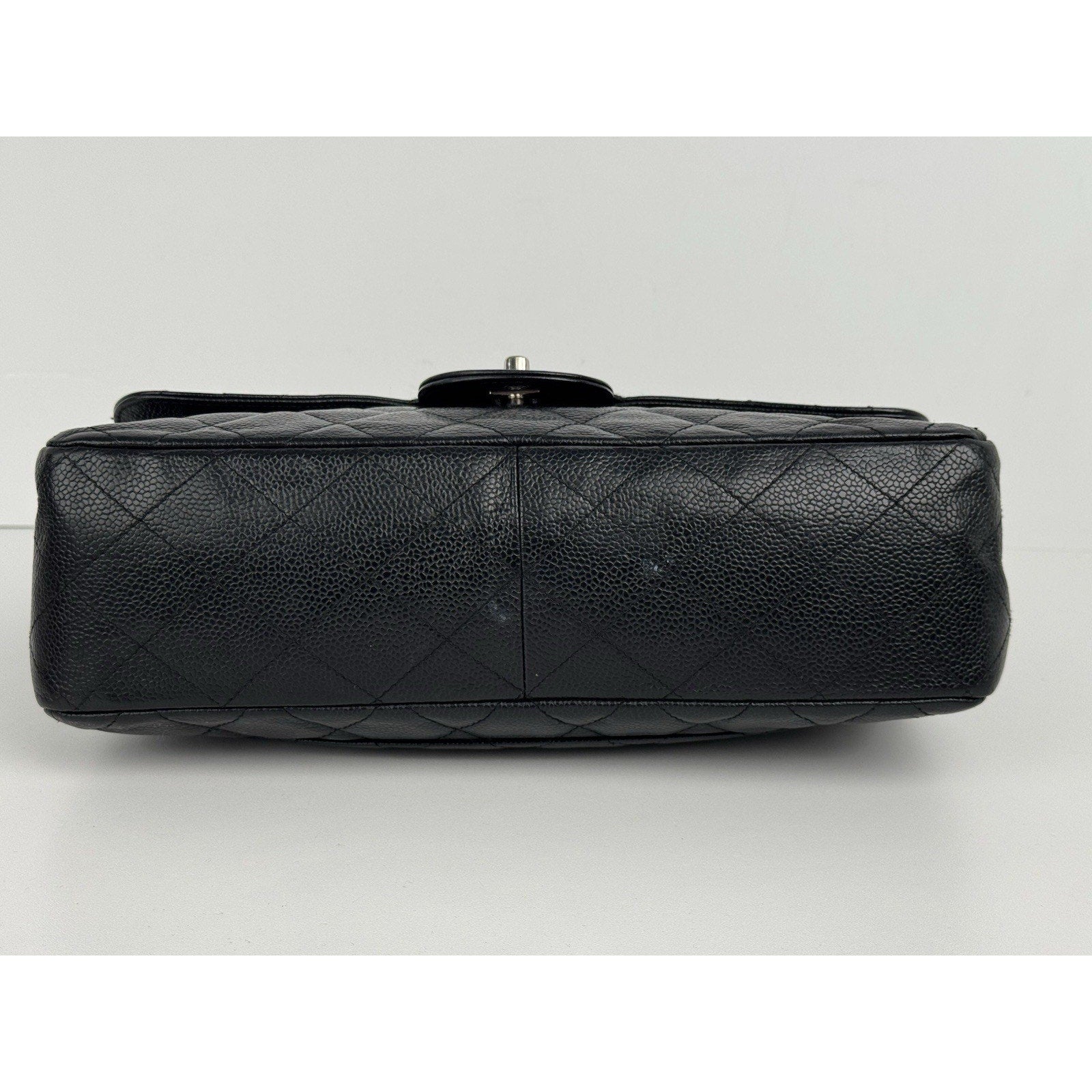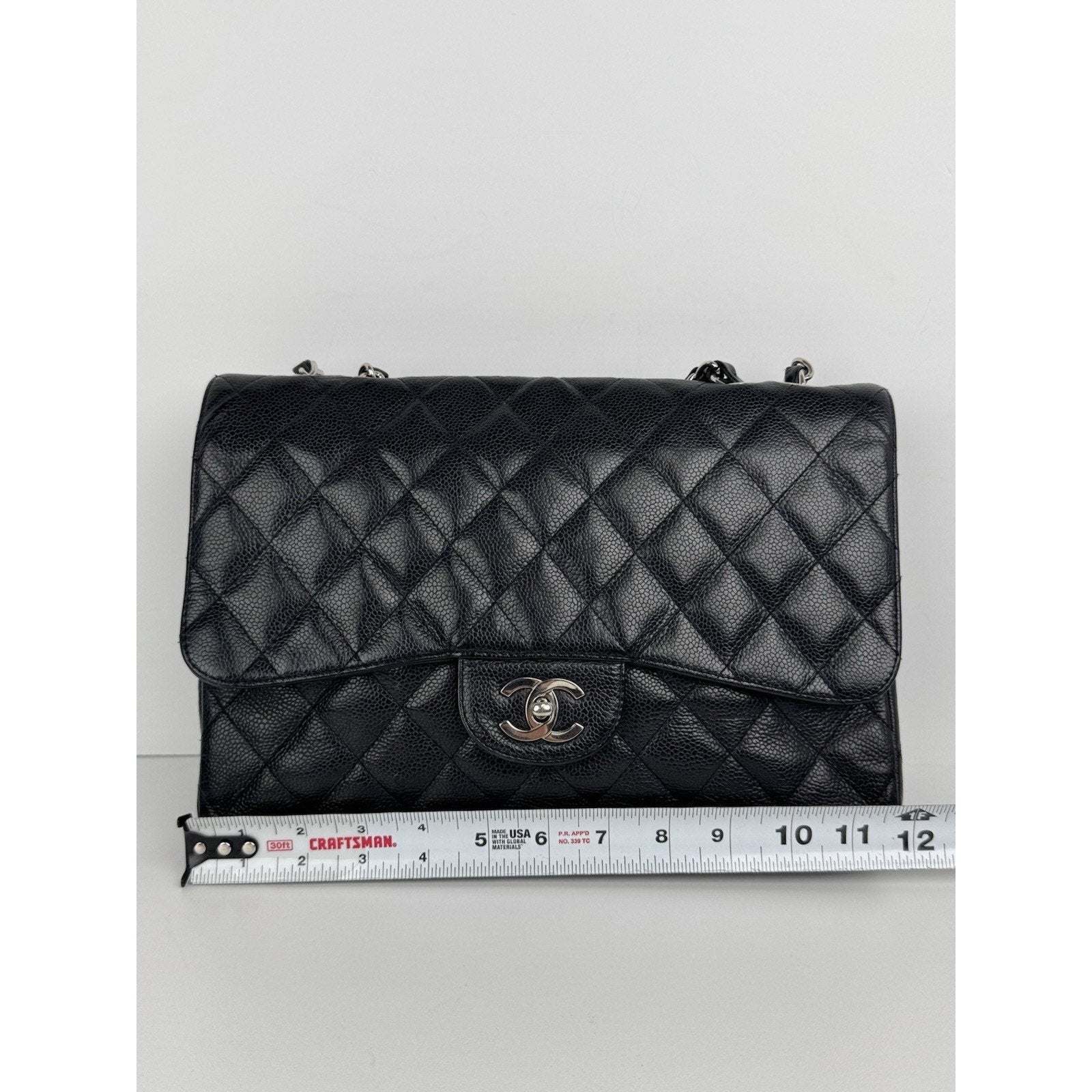 Chanel Jumbo Classic Single Flap Bag in Black Caviar Leather w Silver Hardware