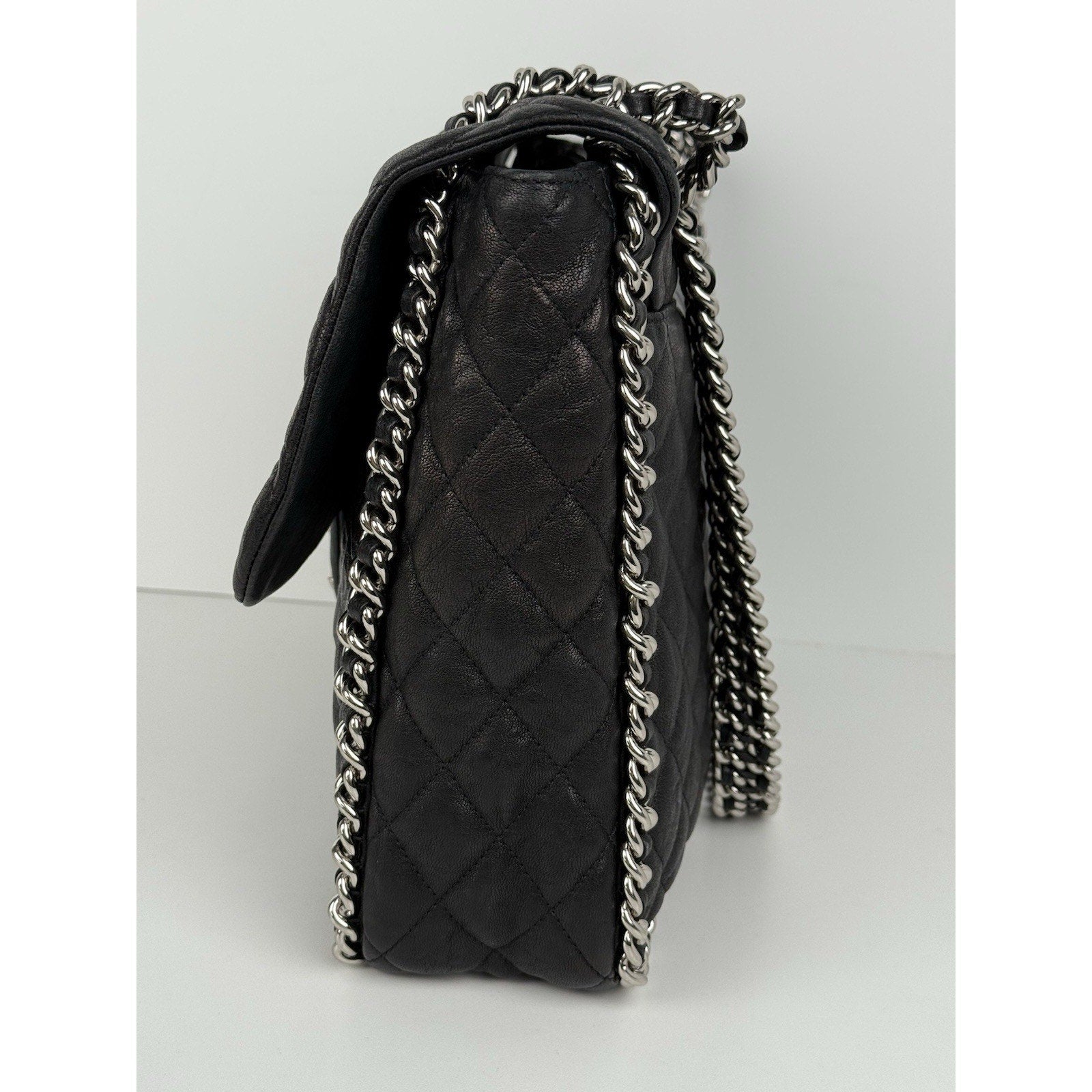 Chanel Paris-Dallas Maxi Chain Around Flap Bag Quilted Black Leather