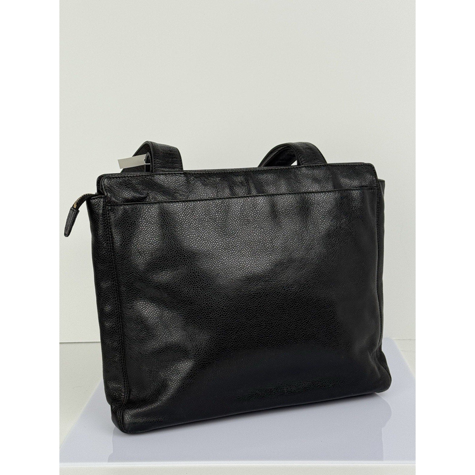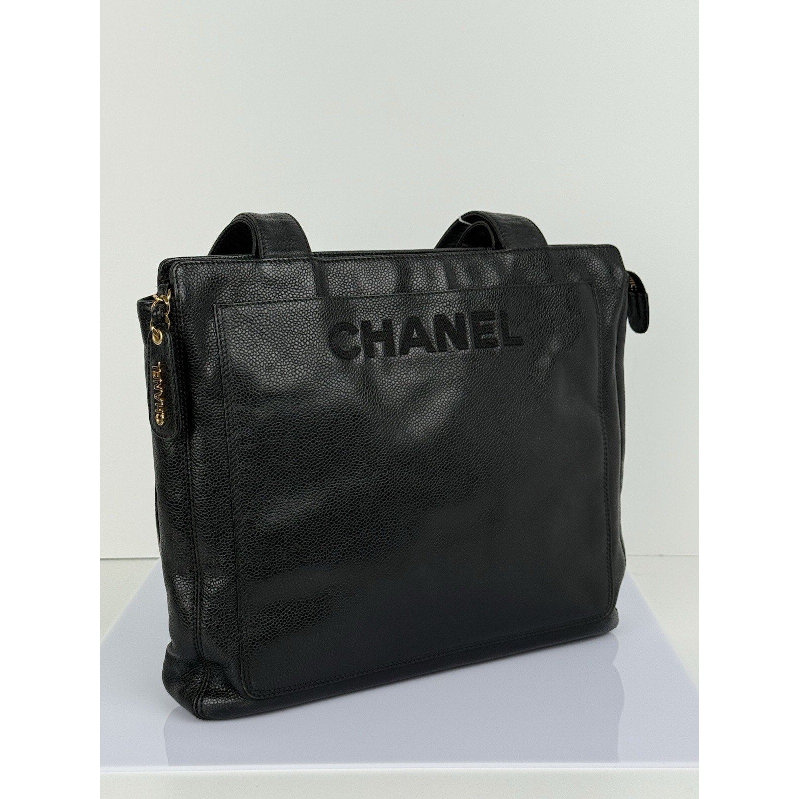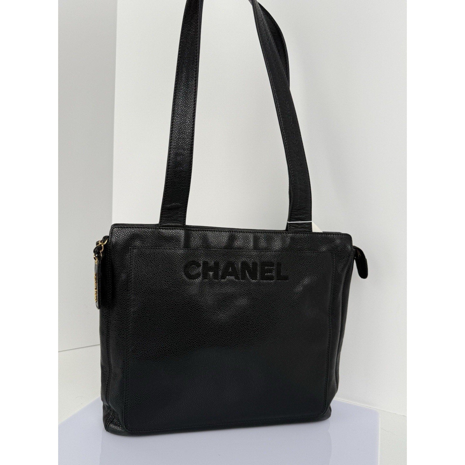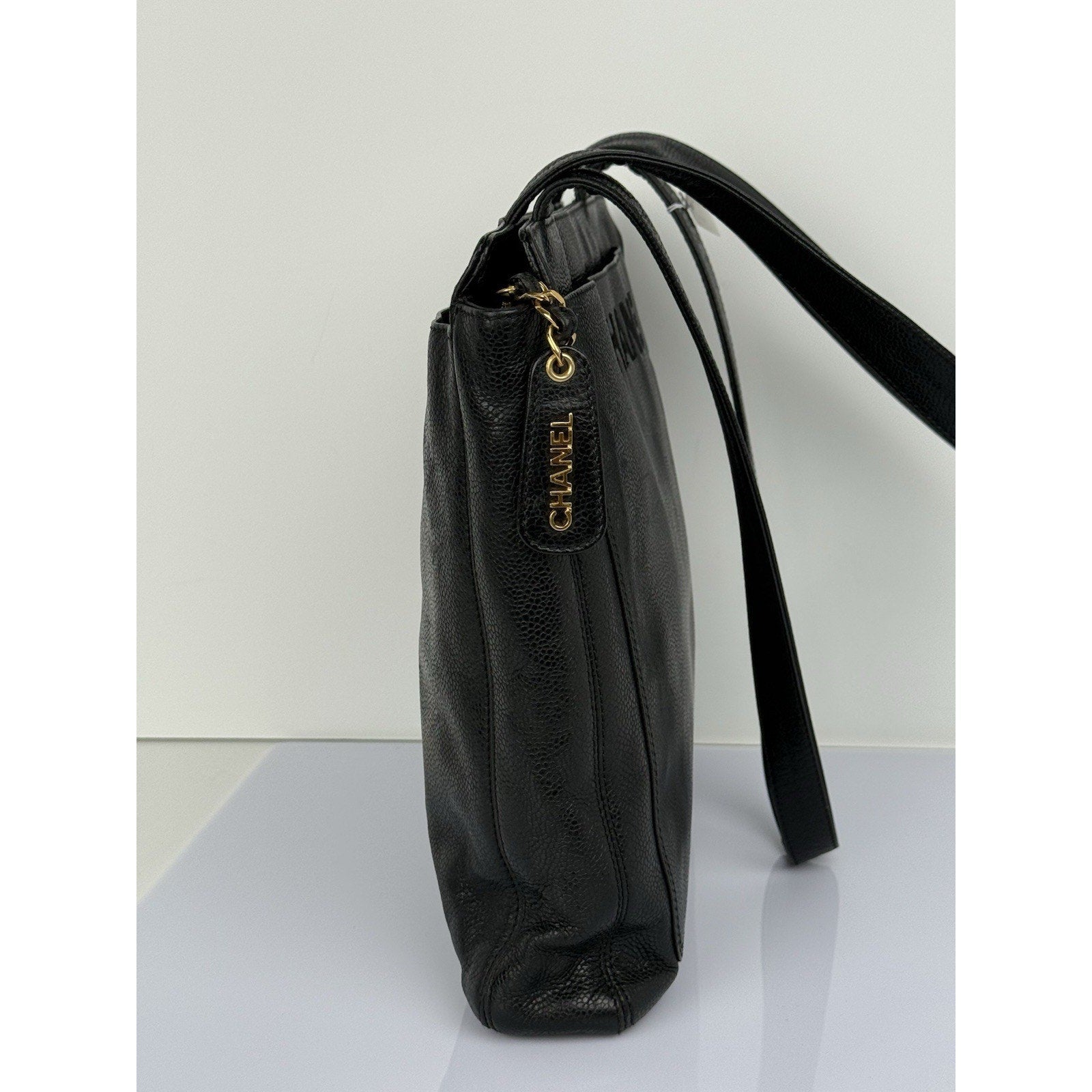 CHANEL Tote Bag Grained Calfskin Black Gold Hardware