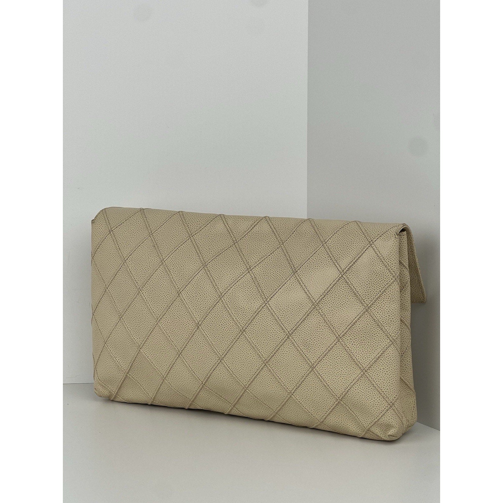 CHANEL Vintage (2000-2002) Caviar Diamond Stitch Oversized Flap Leather Clutch