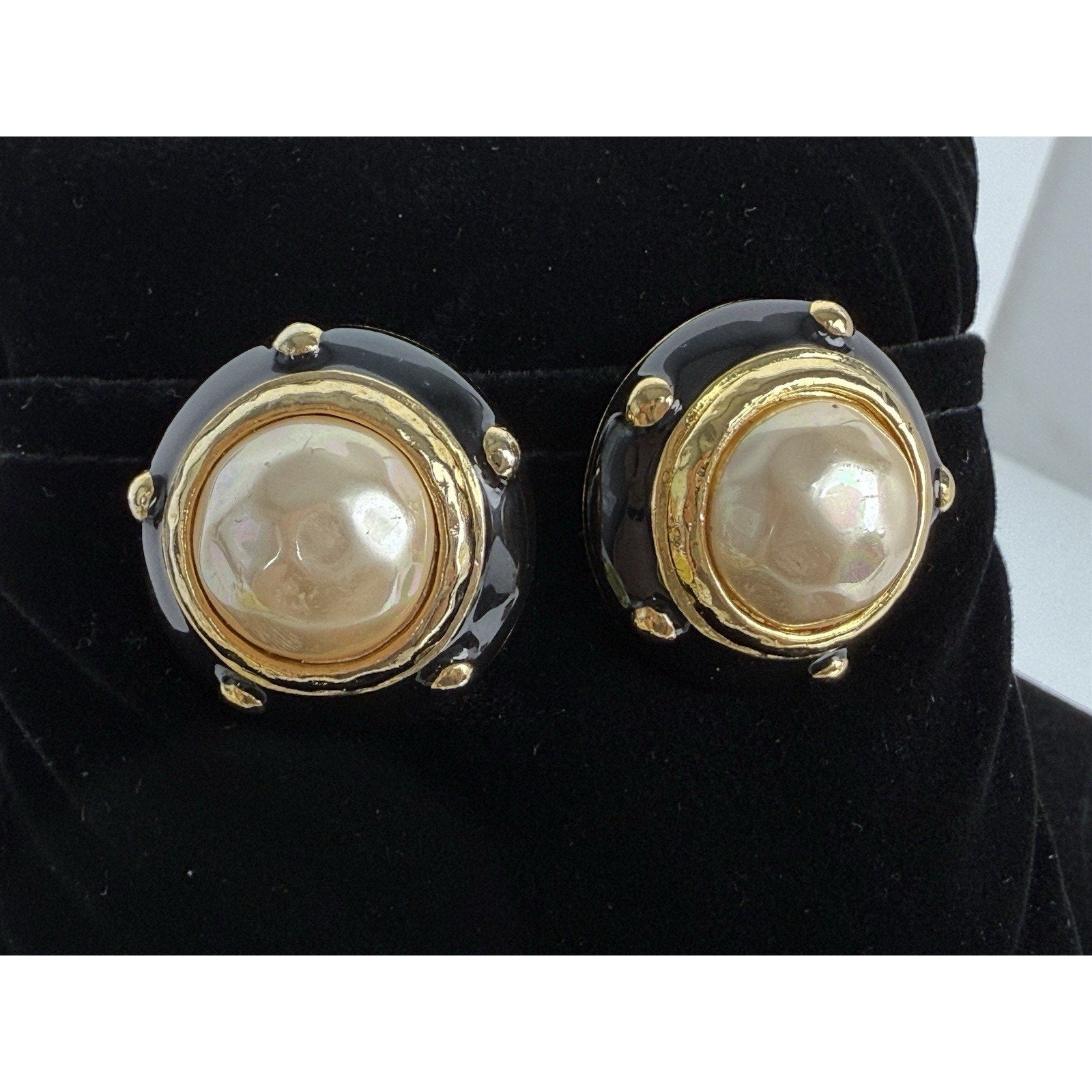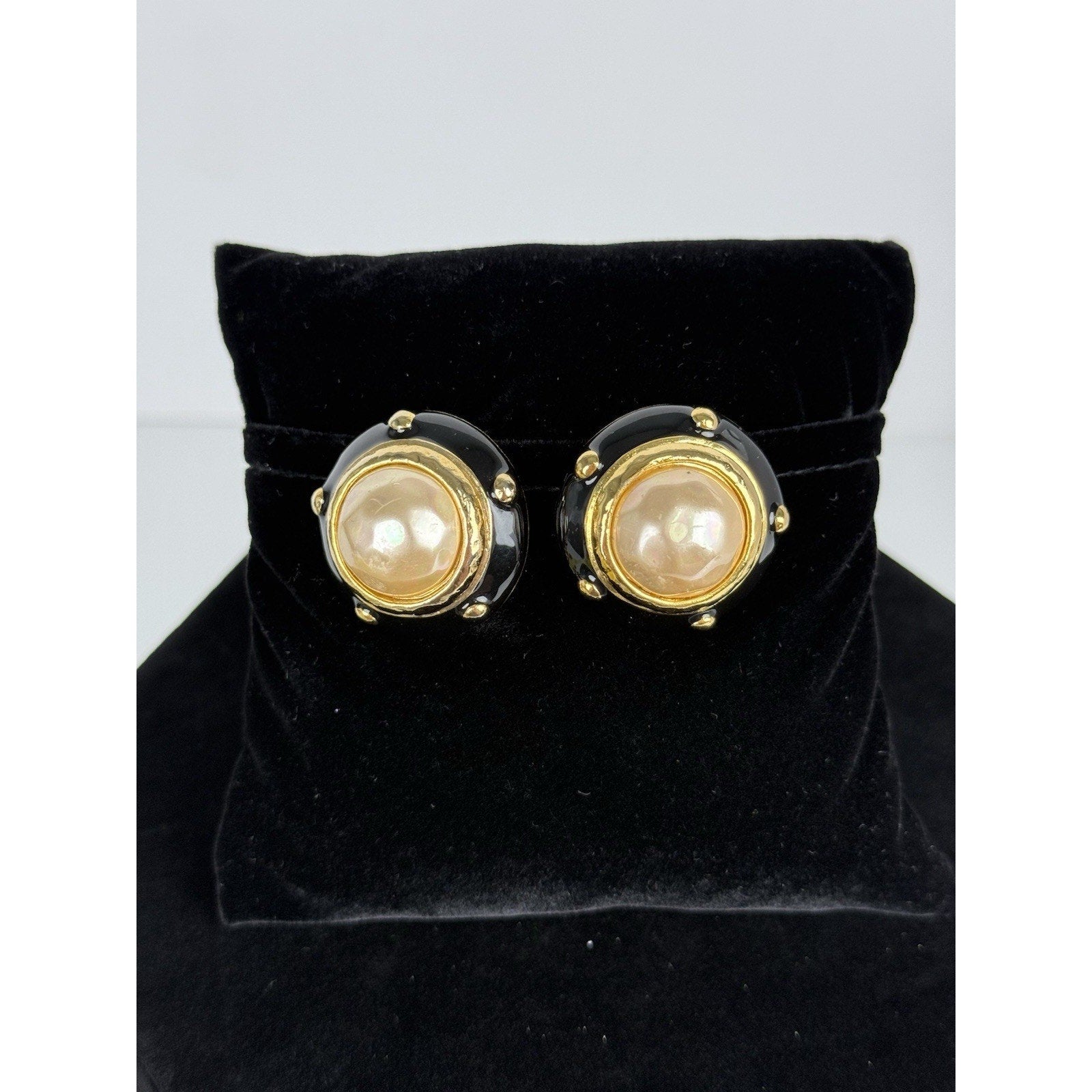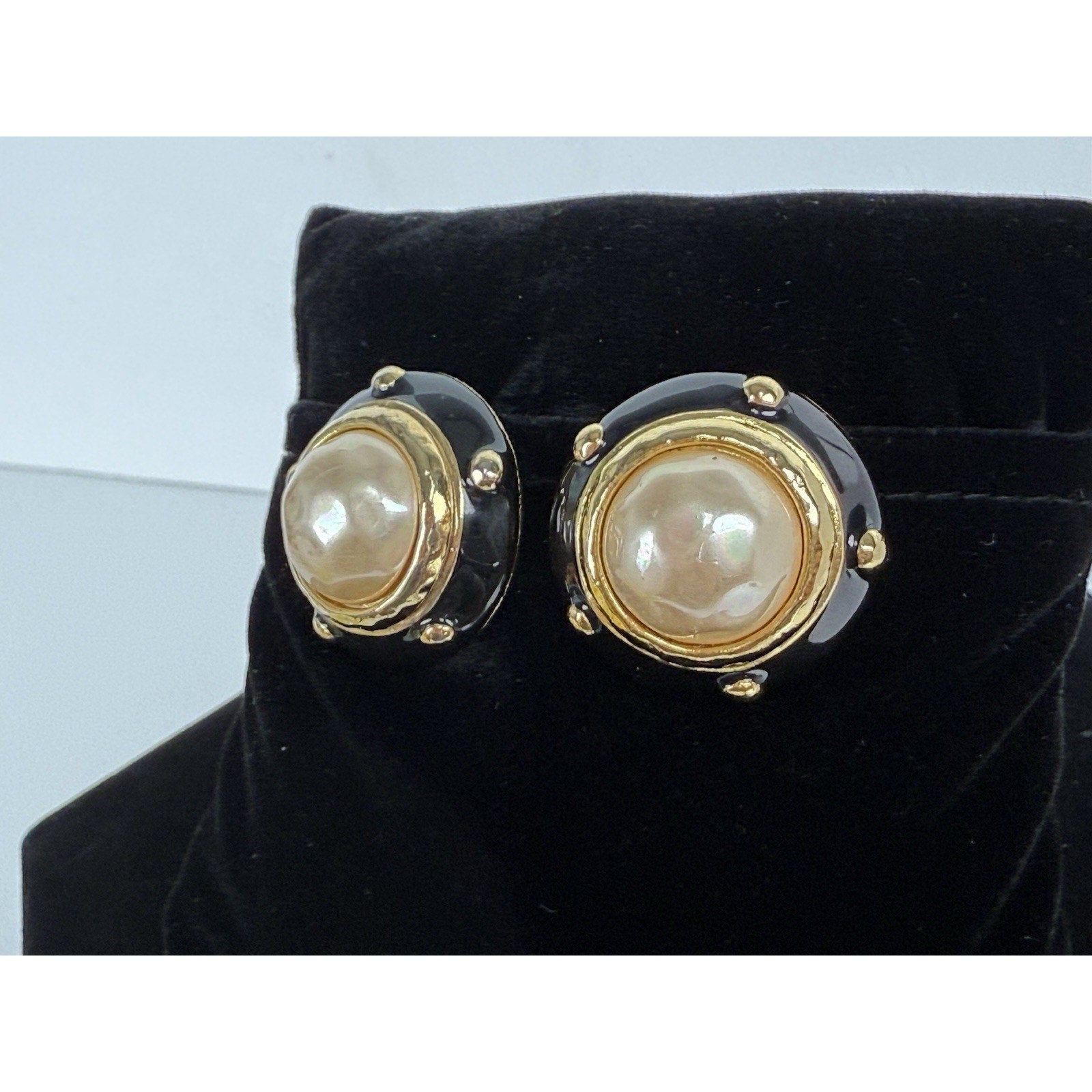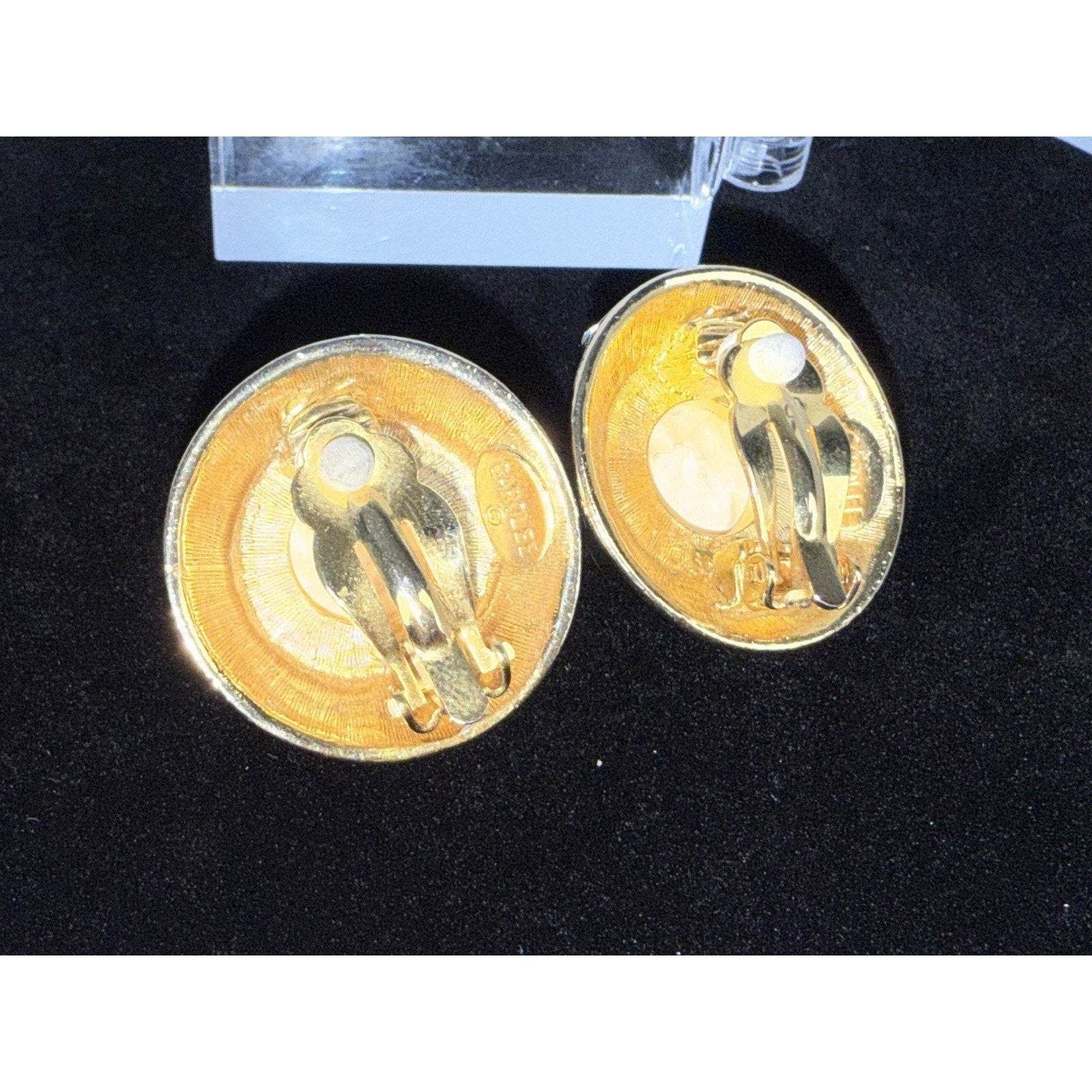 Chanel Vintage Faux Pearl Earrings Clip-On Gold