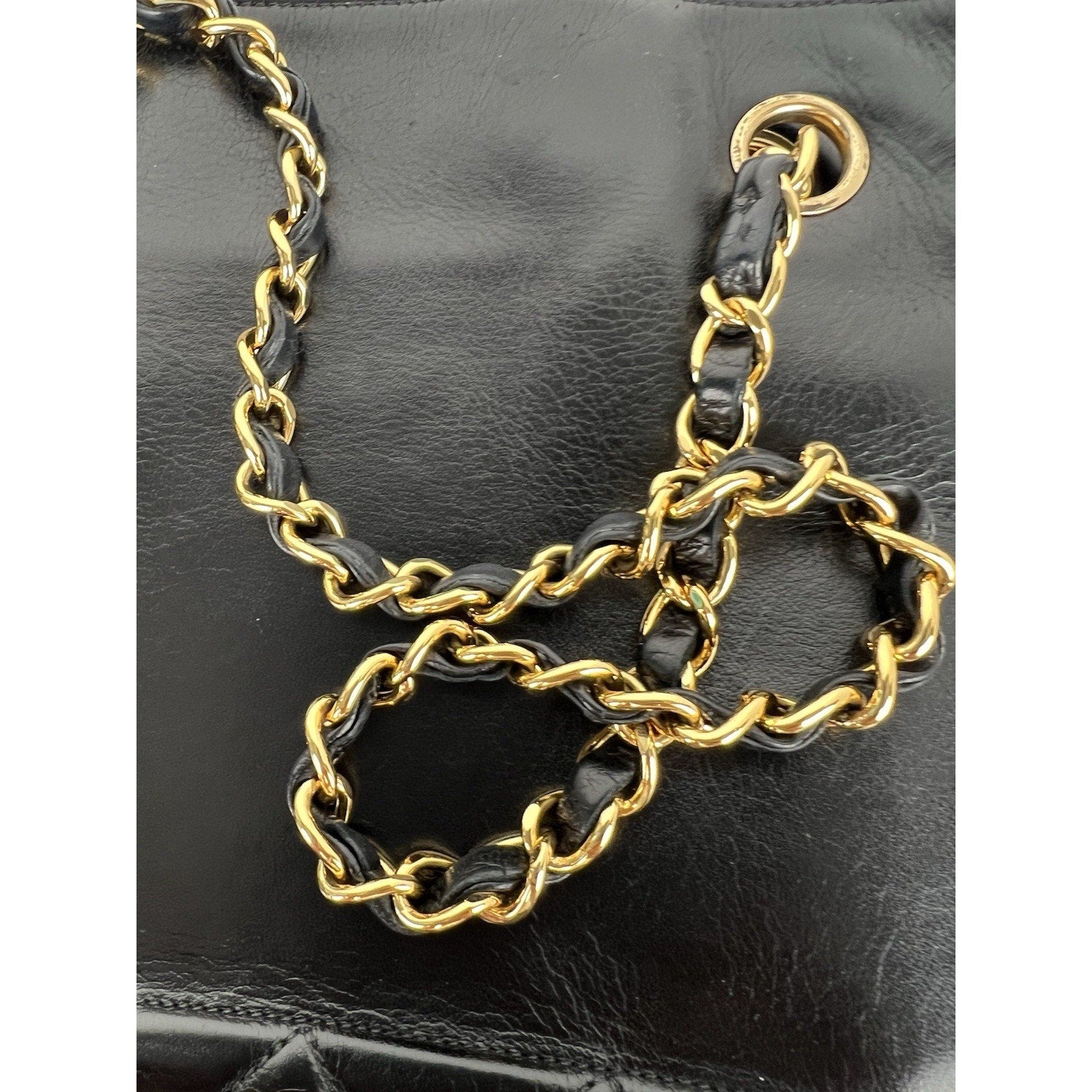 CHANEL Vintage Lambskin Black Leather Tote Shoulder Bag (1989-1991)