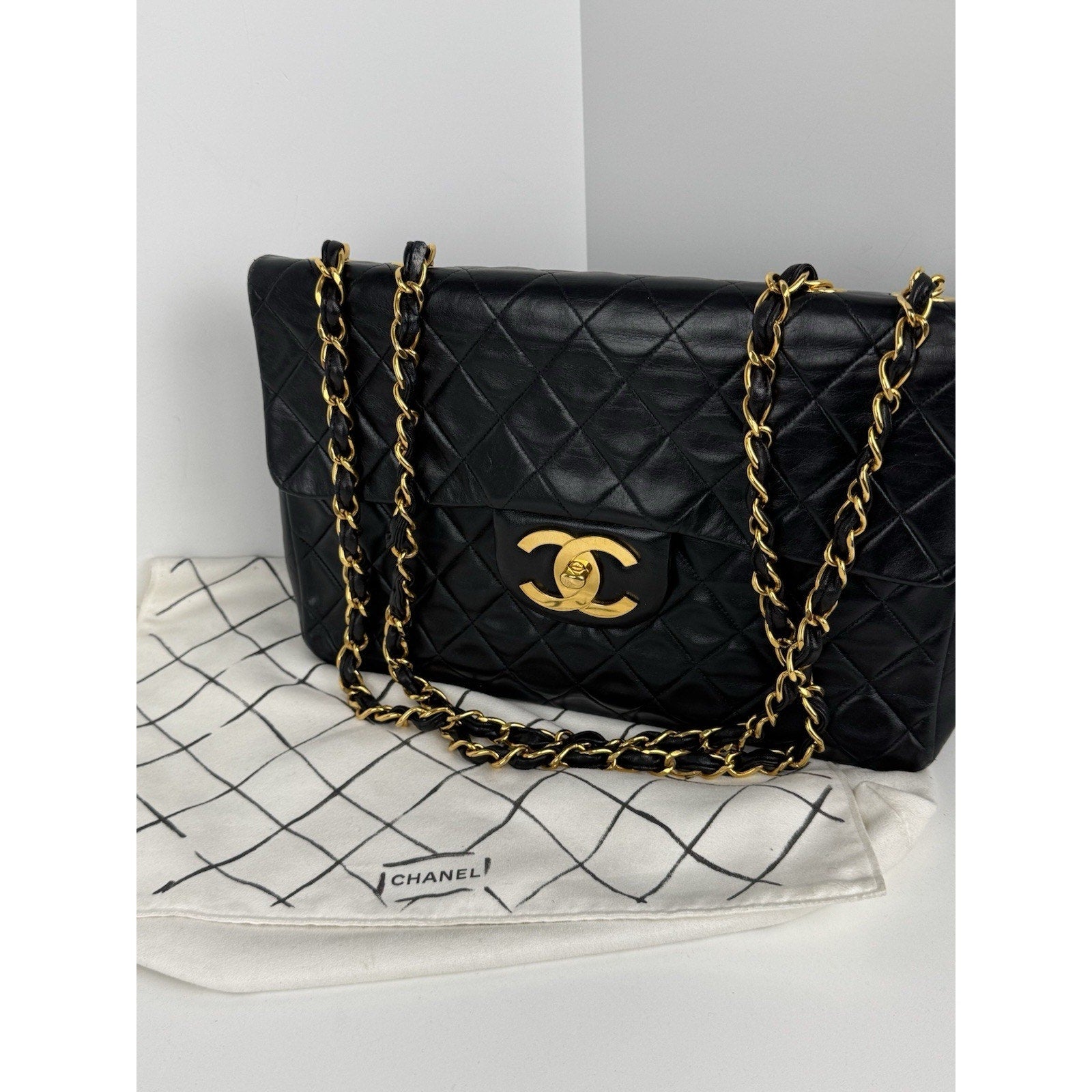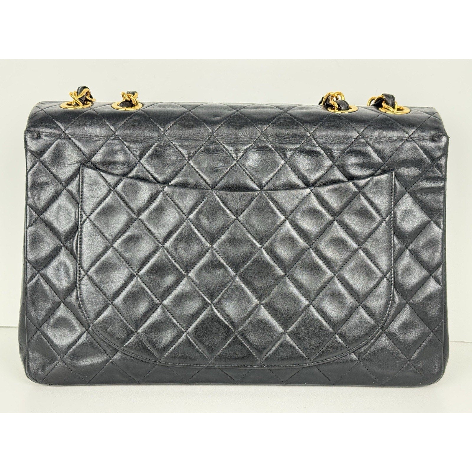 Chanel Vintage Maxi Single Flap Bag Black Lambskin Leather B-6