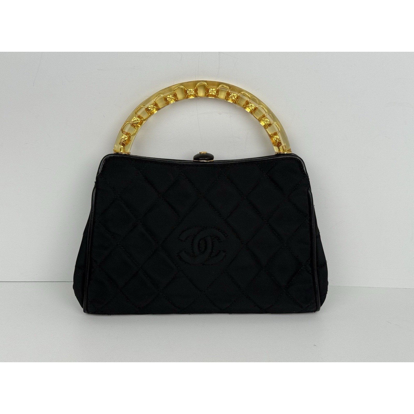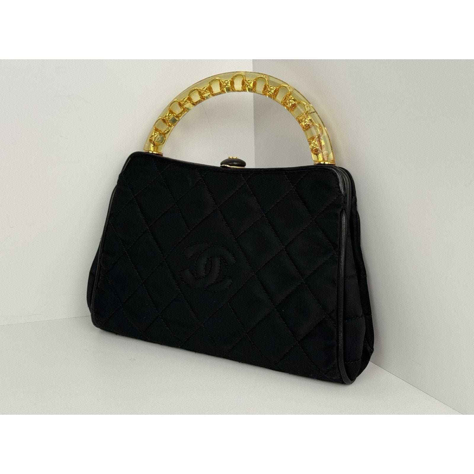 Chanel Vintage Small Fabric Top-Handle Bag with Amber Resin Chain