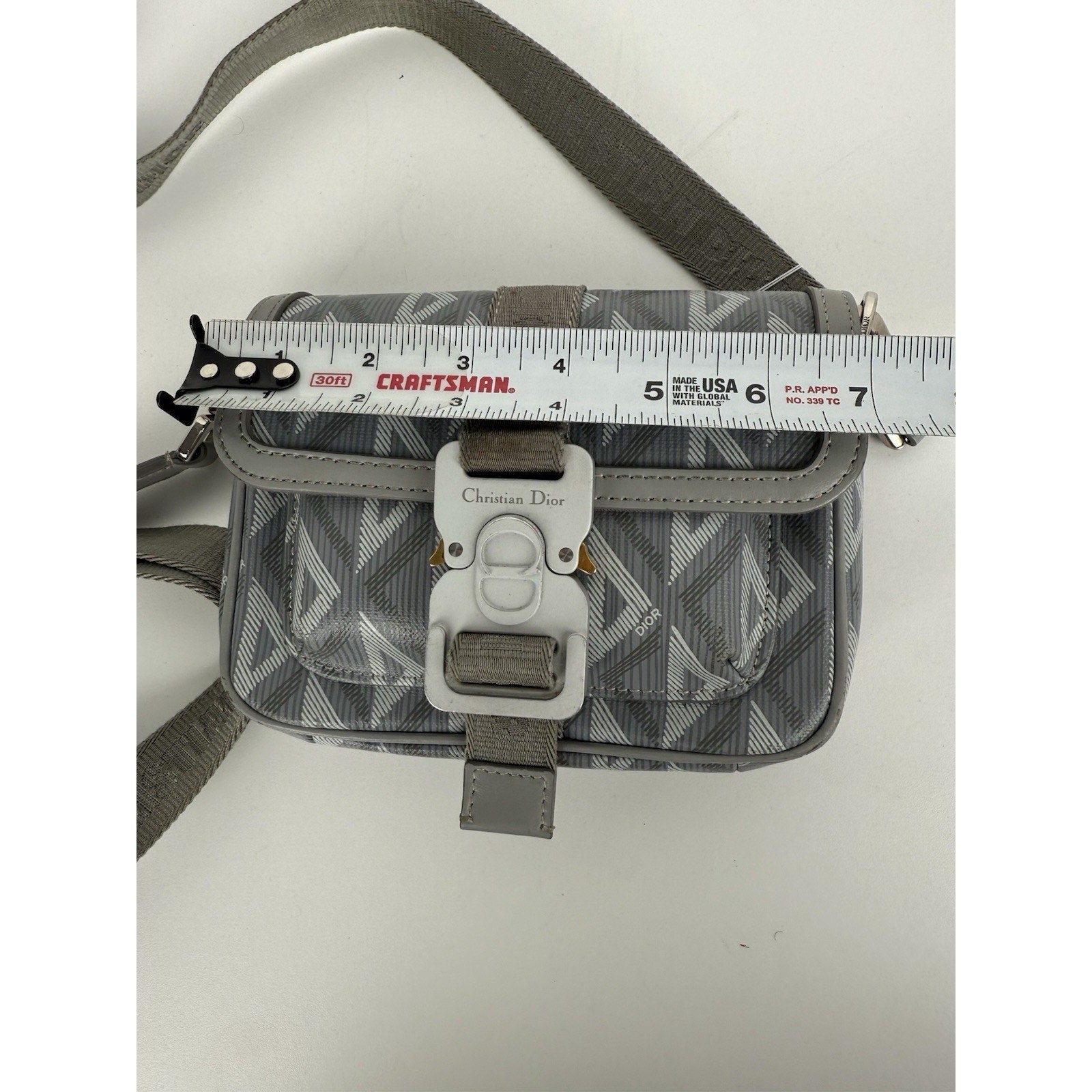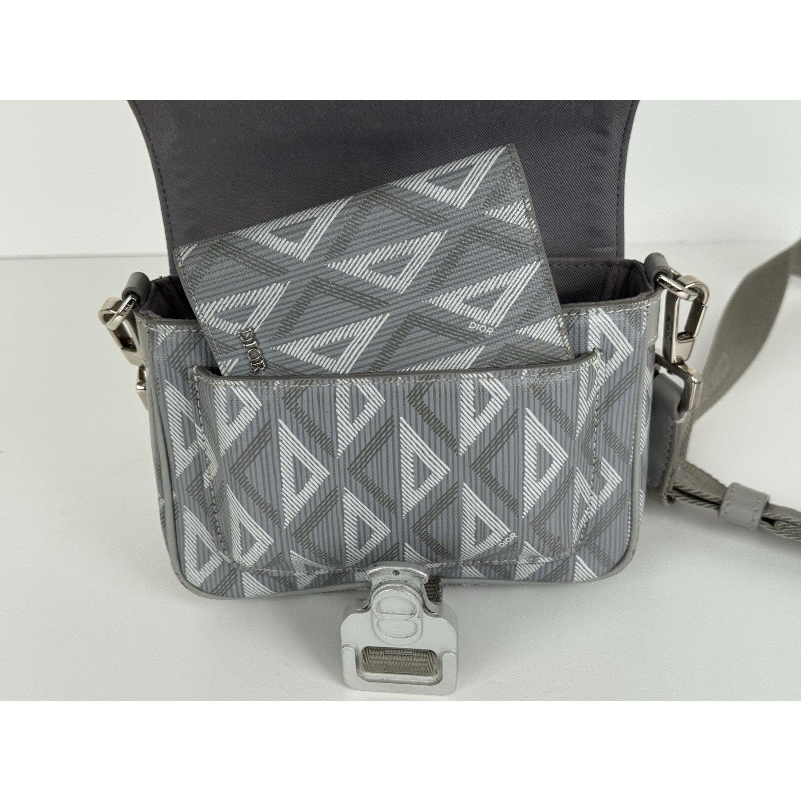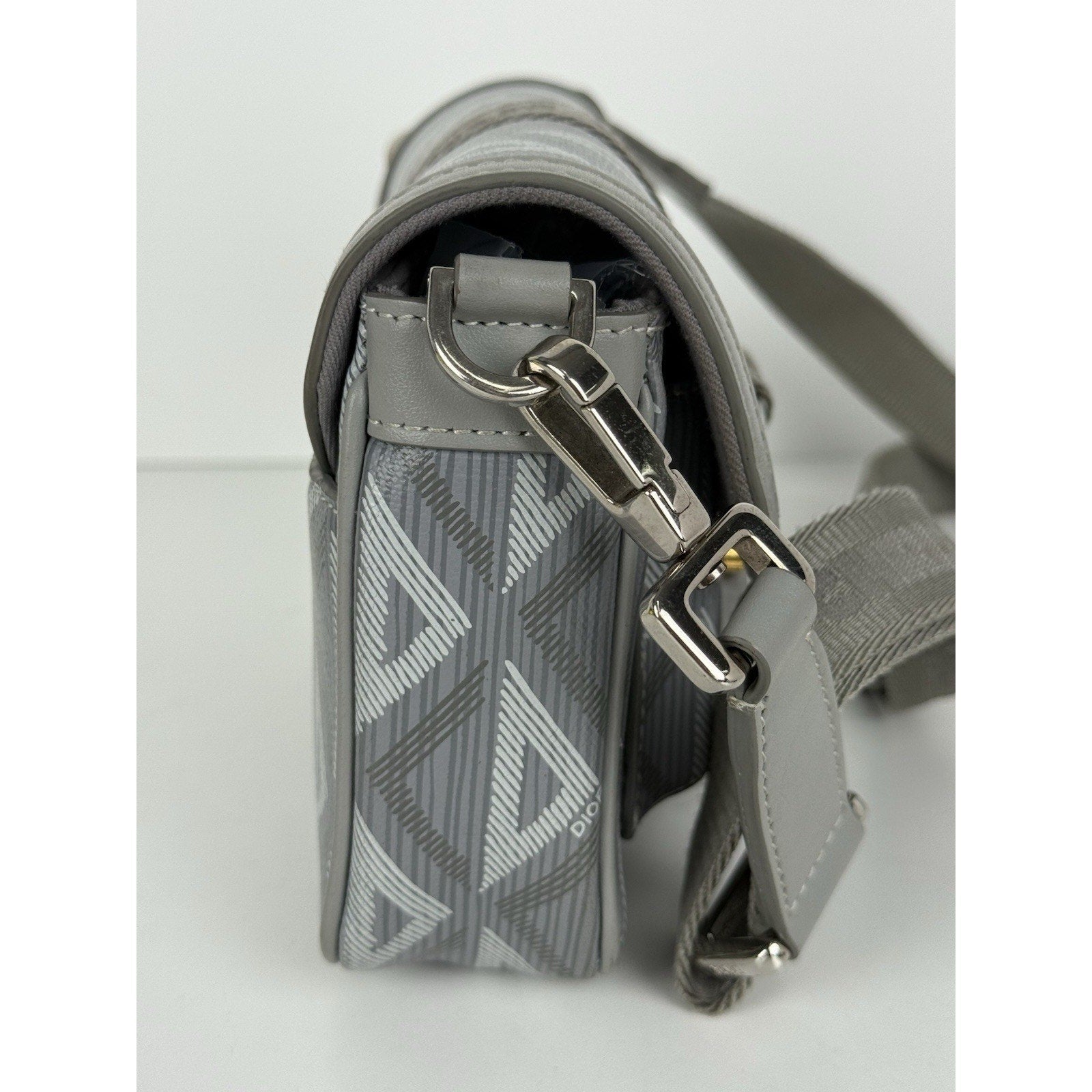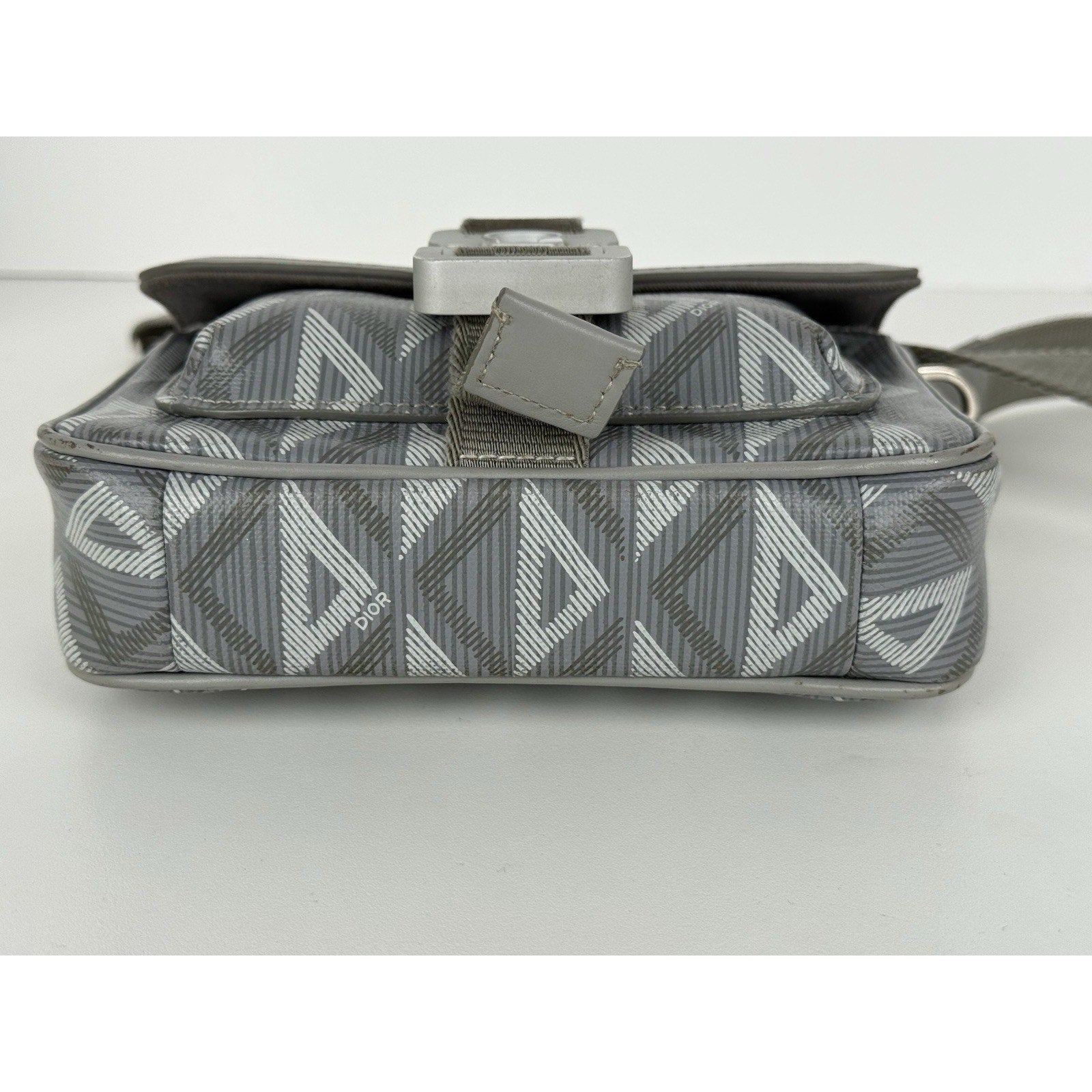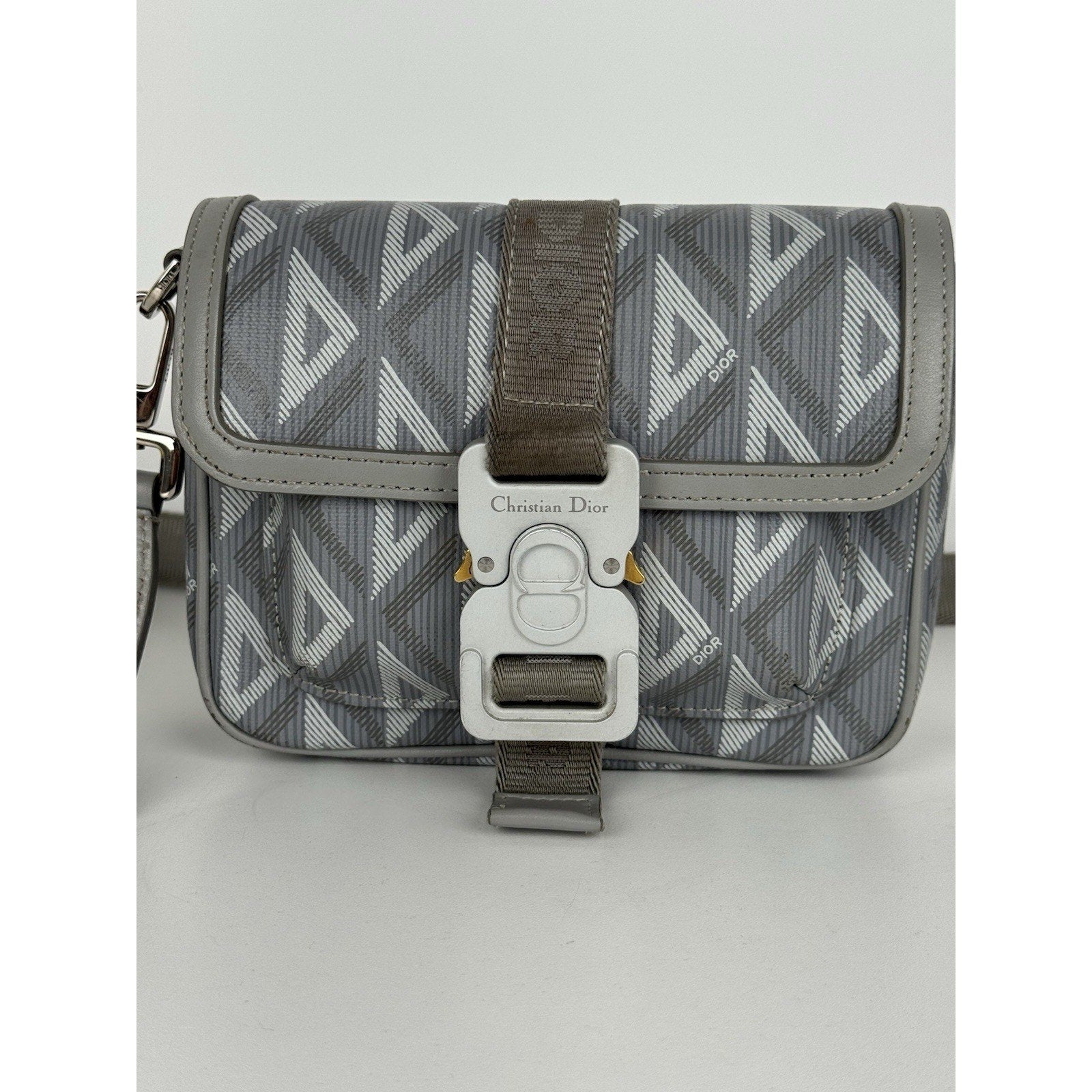 Christian Dior Hit the Road Flap Crossbody Bag CD Diamond Coated Gray Canvas