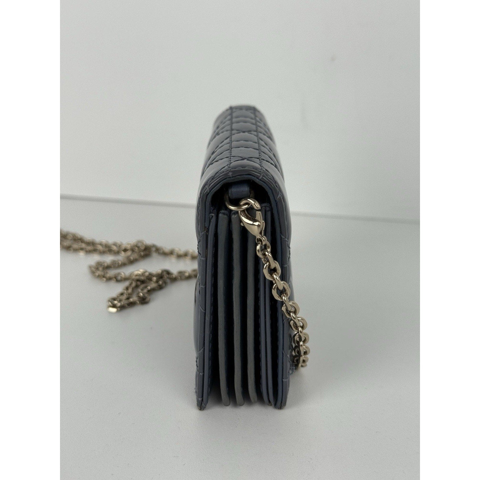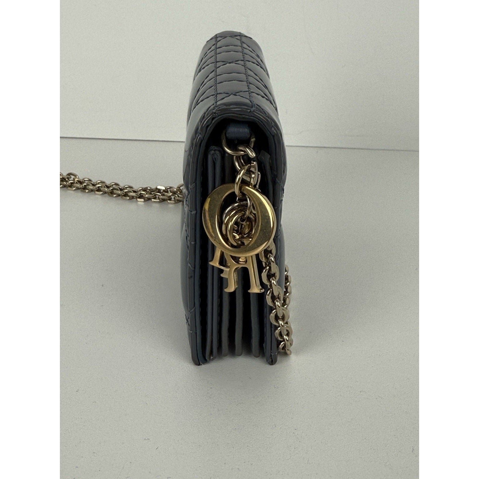 Christian Dior Lady Dior Nano Card Holder Chain Pouch Cannage Quilt Patent Purse