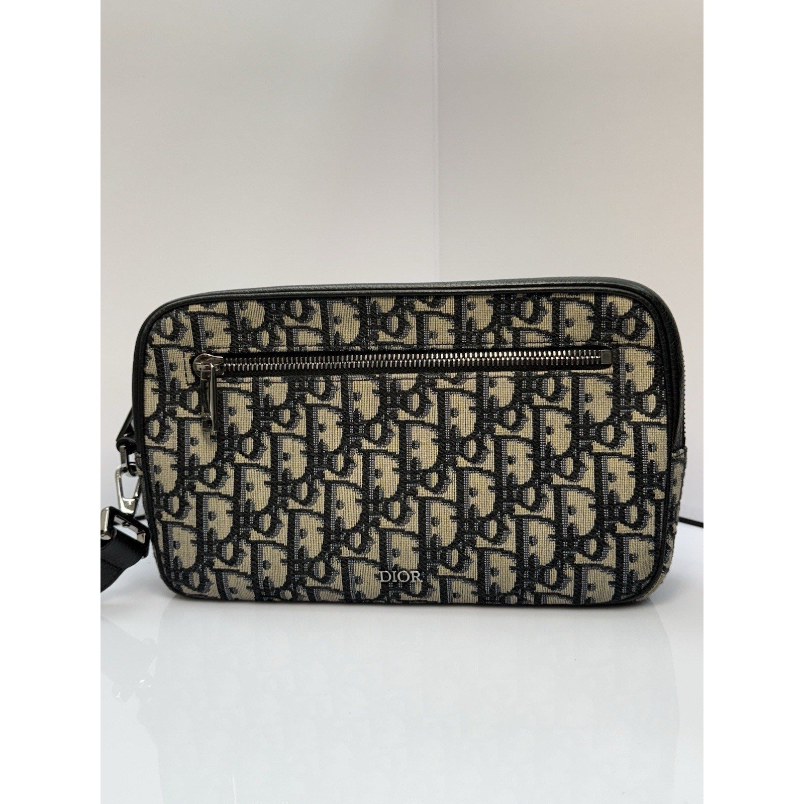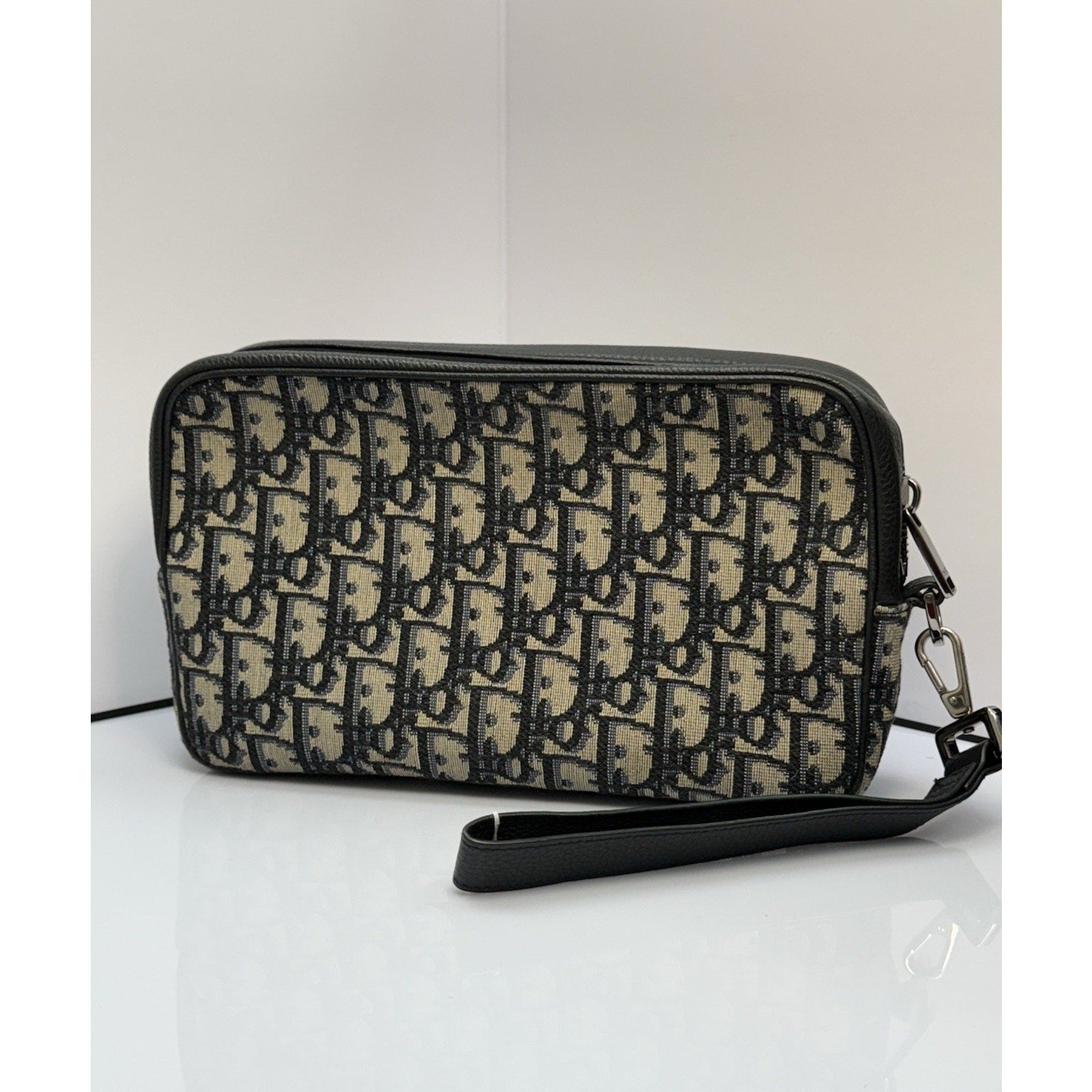 CHRISTIAN DIOR Oblique jacquard Wristlet Pouch Blue
