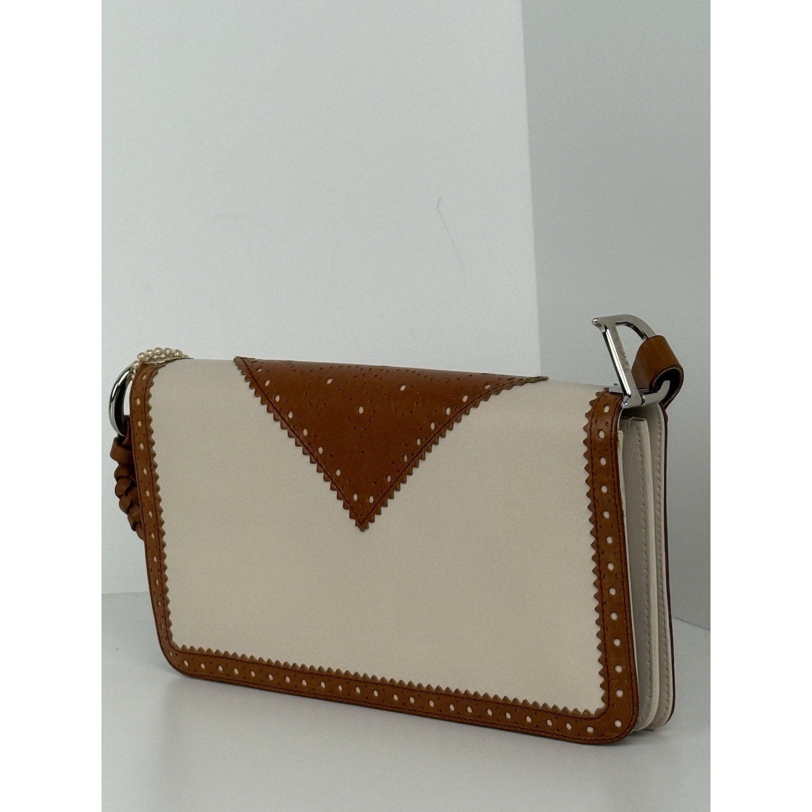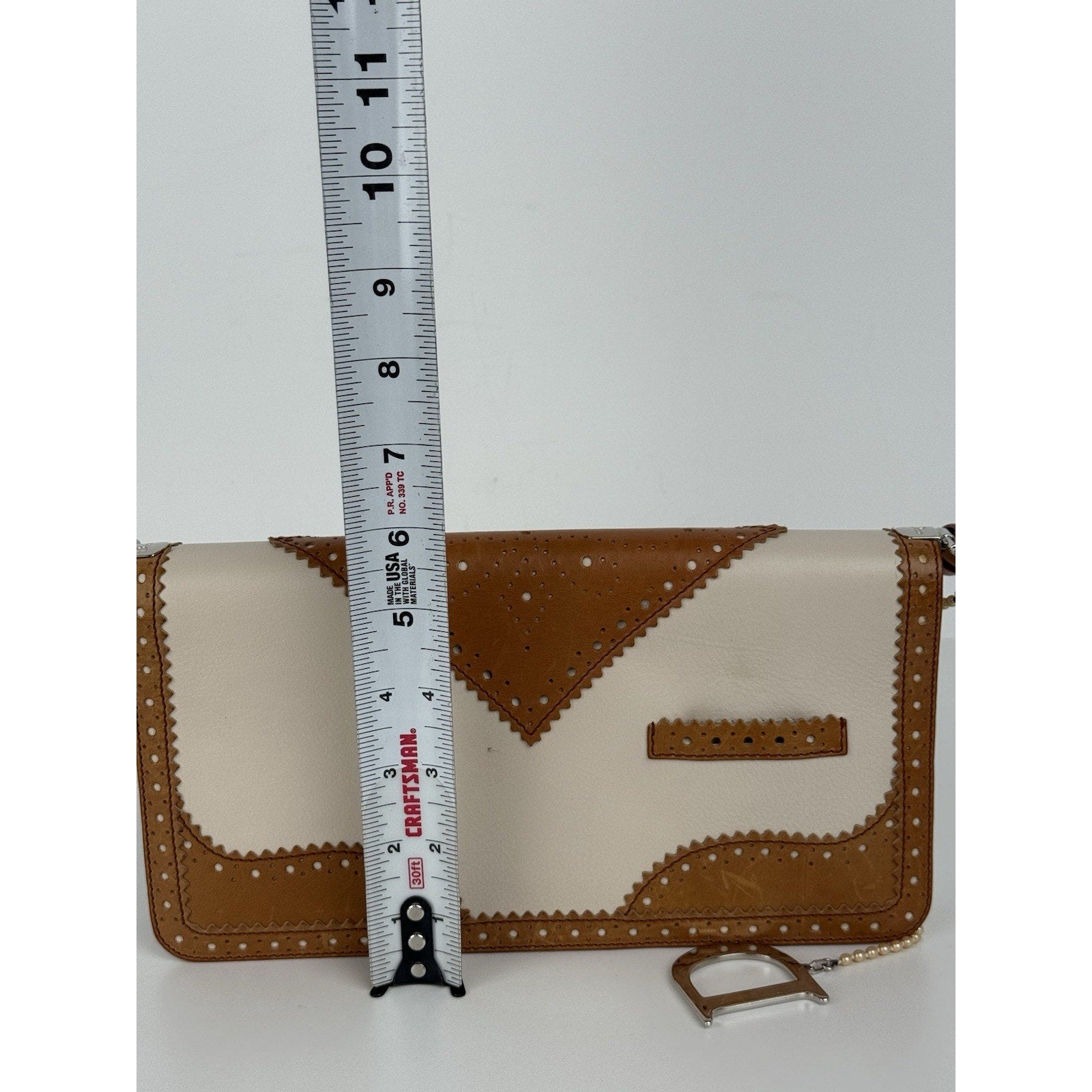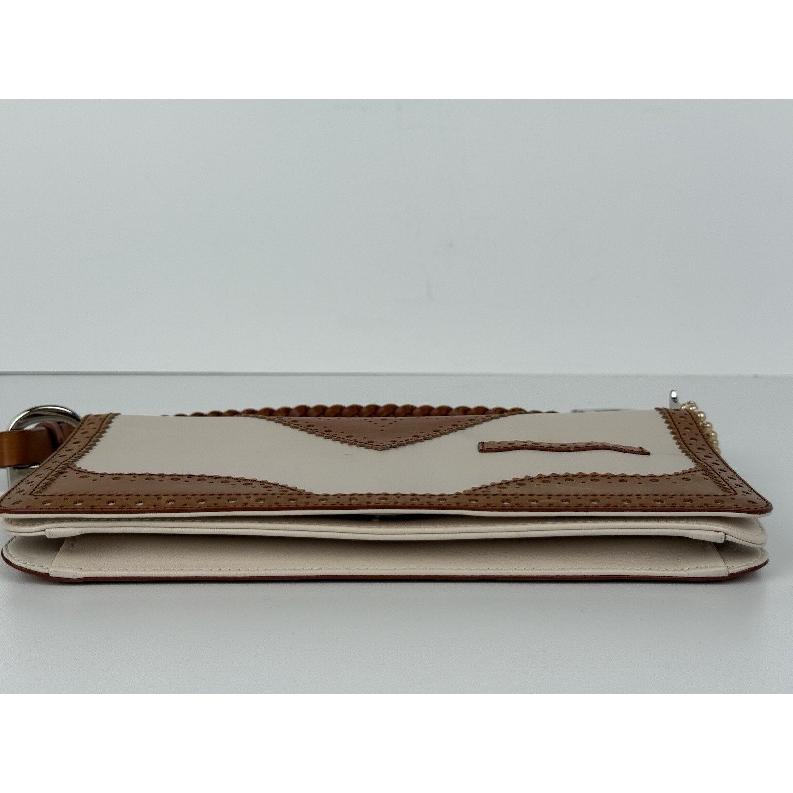 Dior Tan/Off White Brogue Leather Faux Pearl D’Trick Baguette Bag