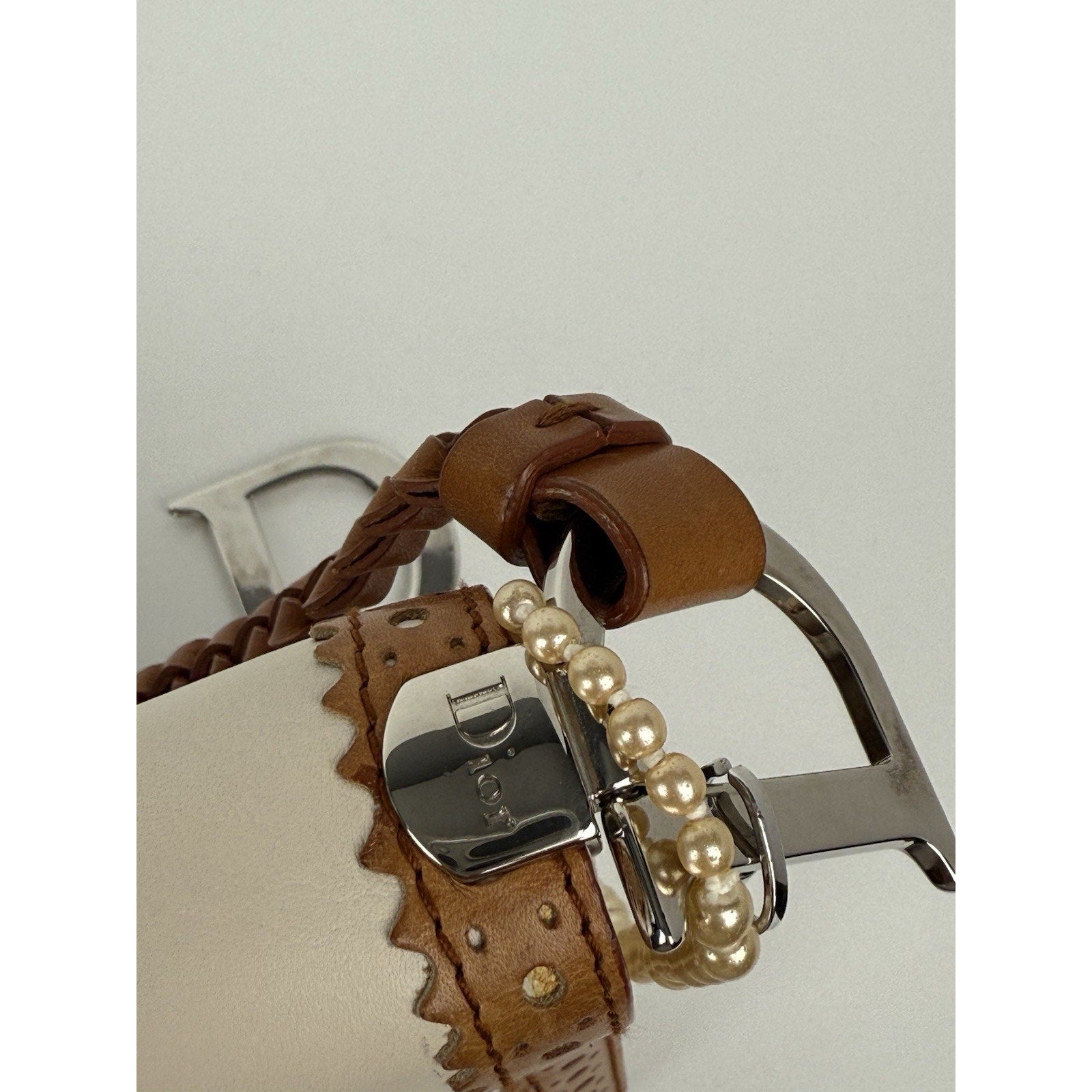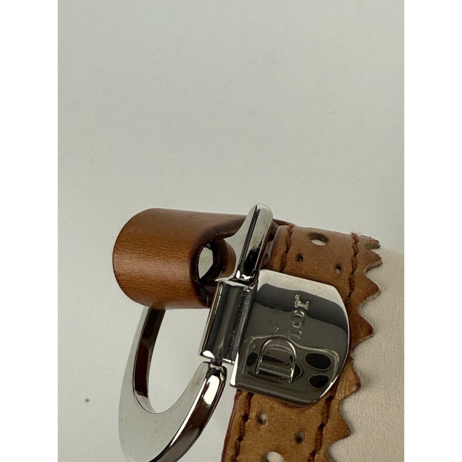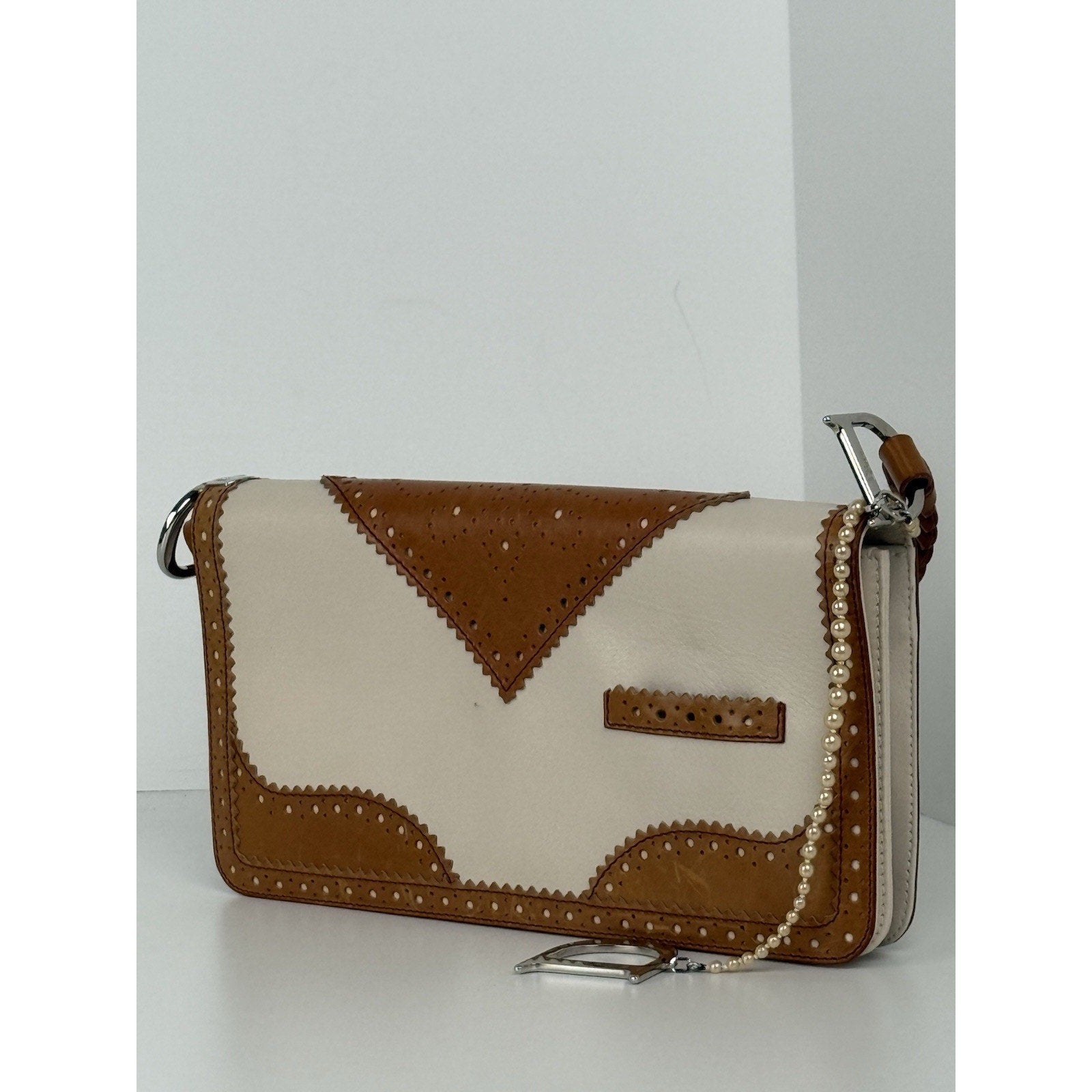 Dior Tan/Off White Brogue Leather Faux Pearl D’Trick Baguette Bag