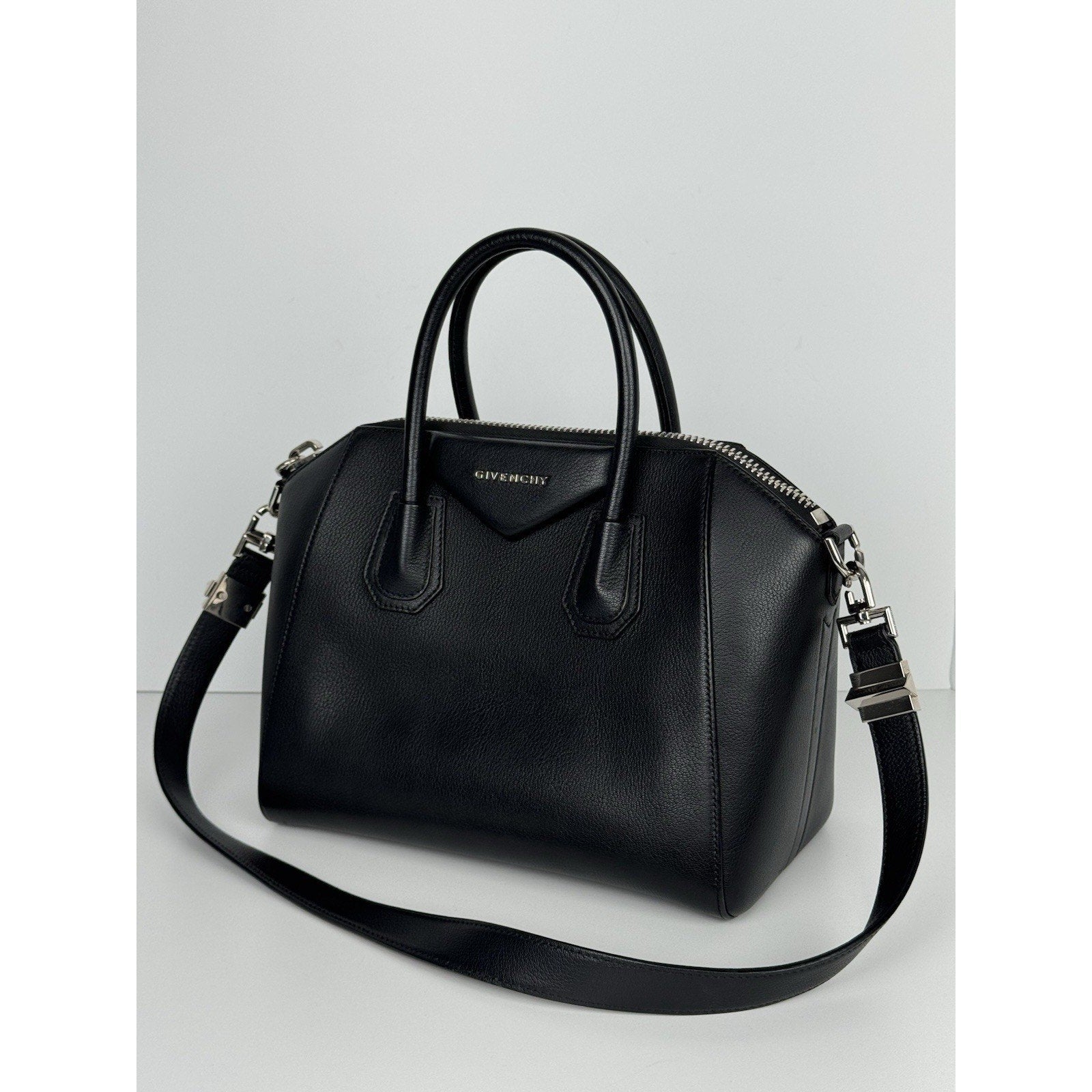 Givenchy Antigona Bag in Black Grained Leather with Silver Hardware S02