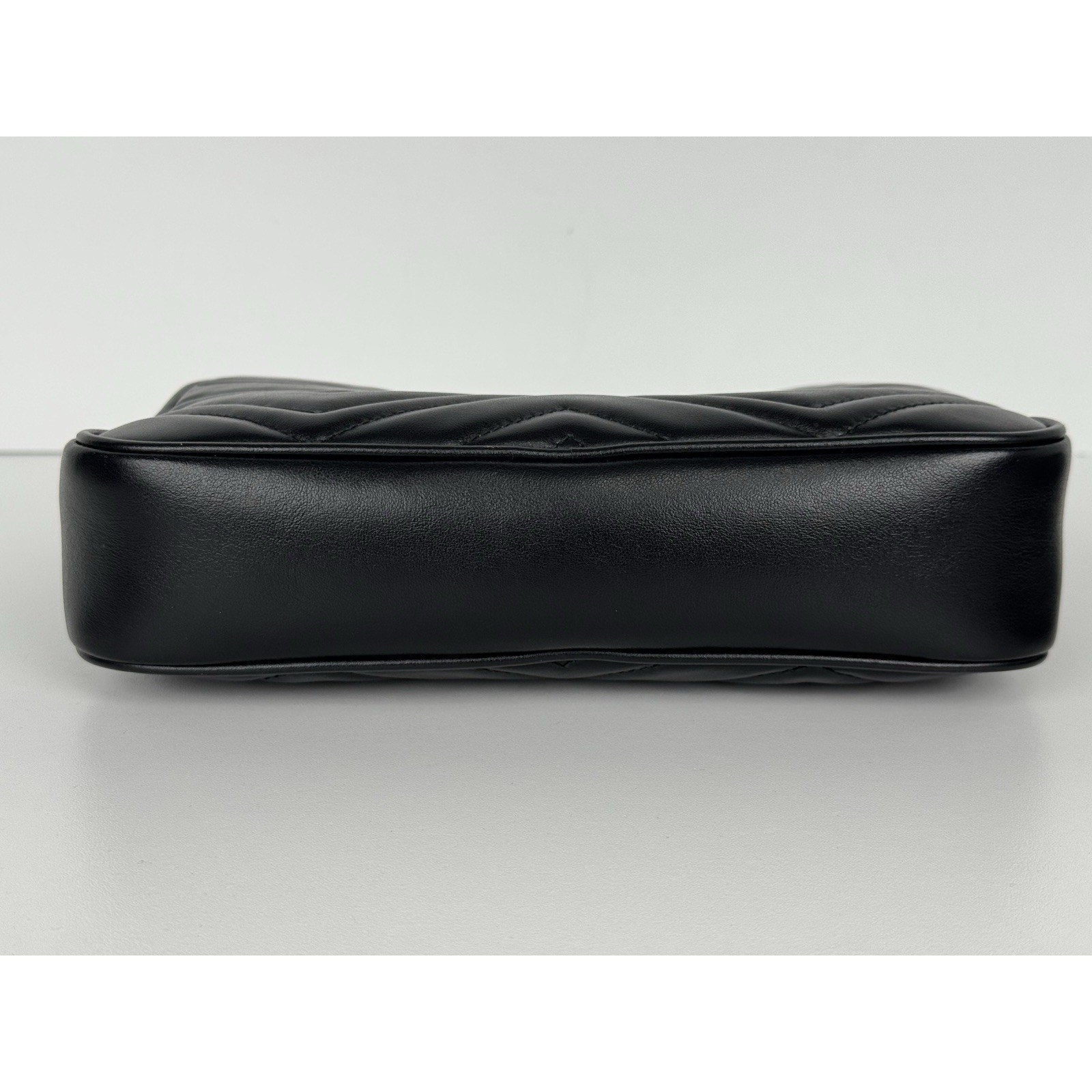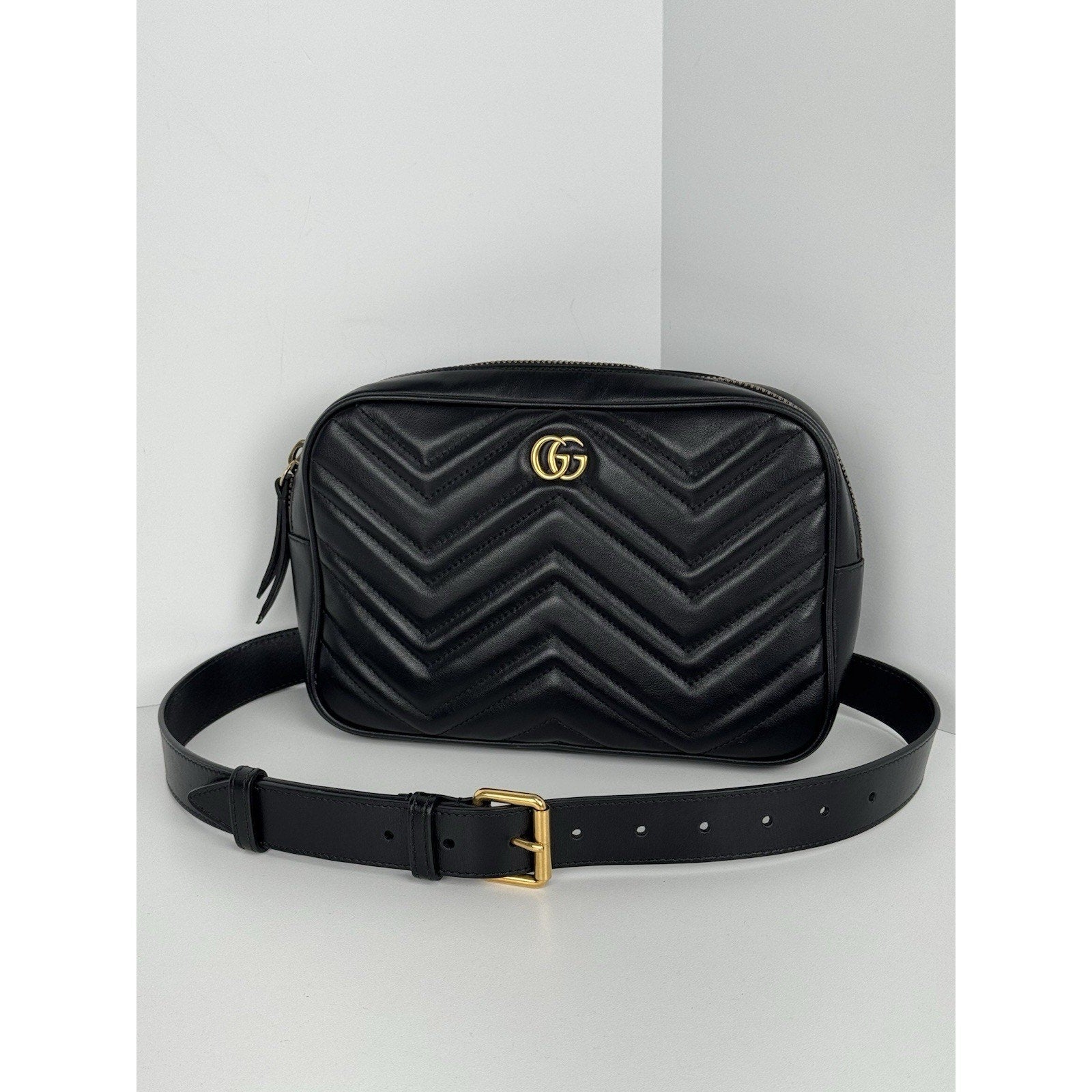 GUCCI Calfskin Matelasse Mens GG Marmont Belt Bag 80 32 Black C-2