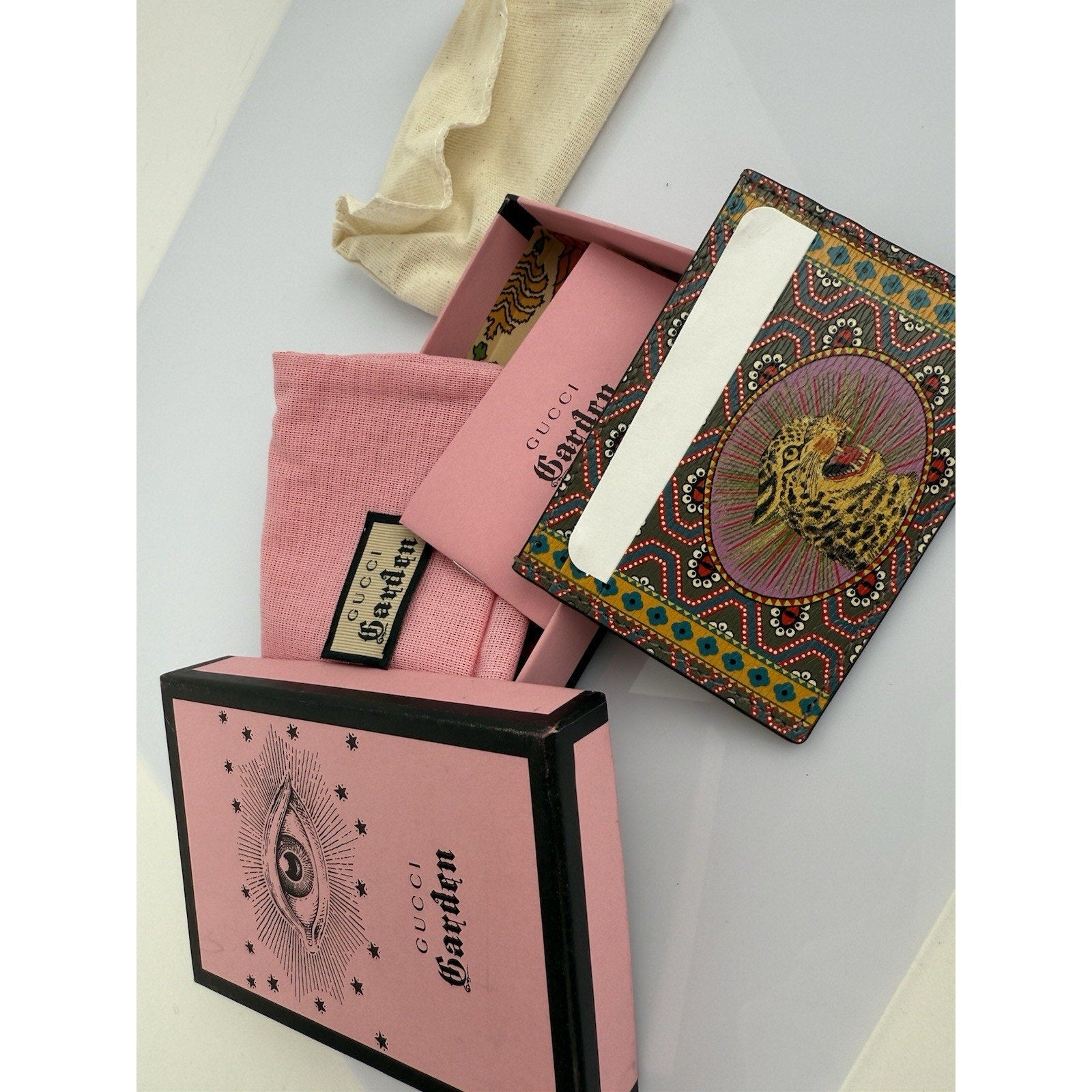 GUCCI Garden Tiger Pink Card Holder Wallet Unisex