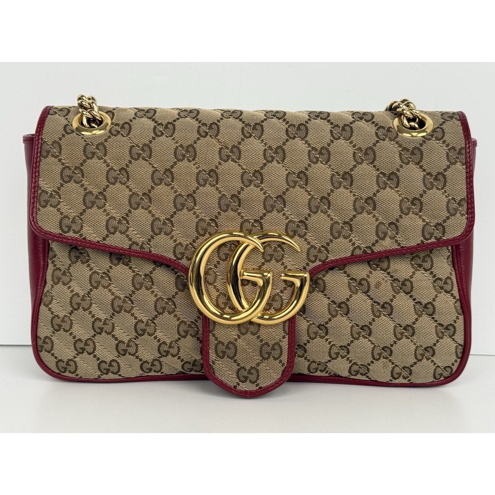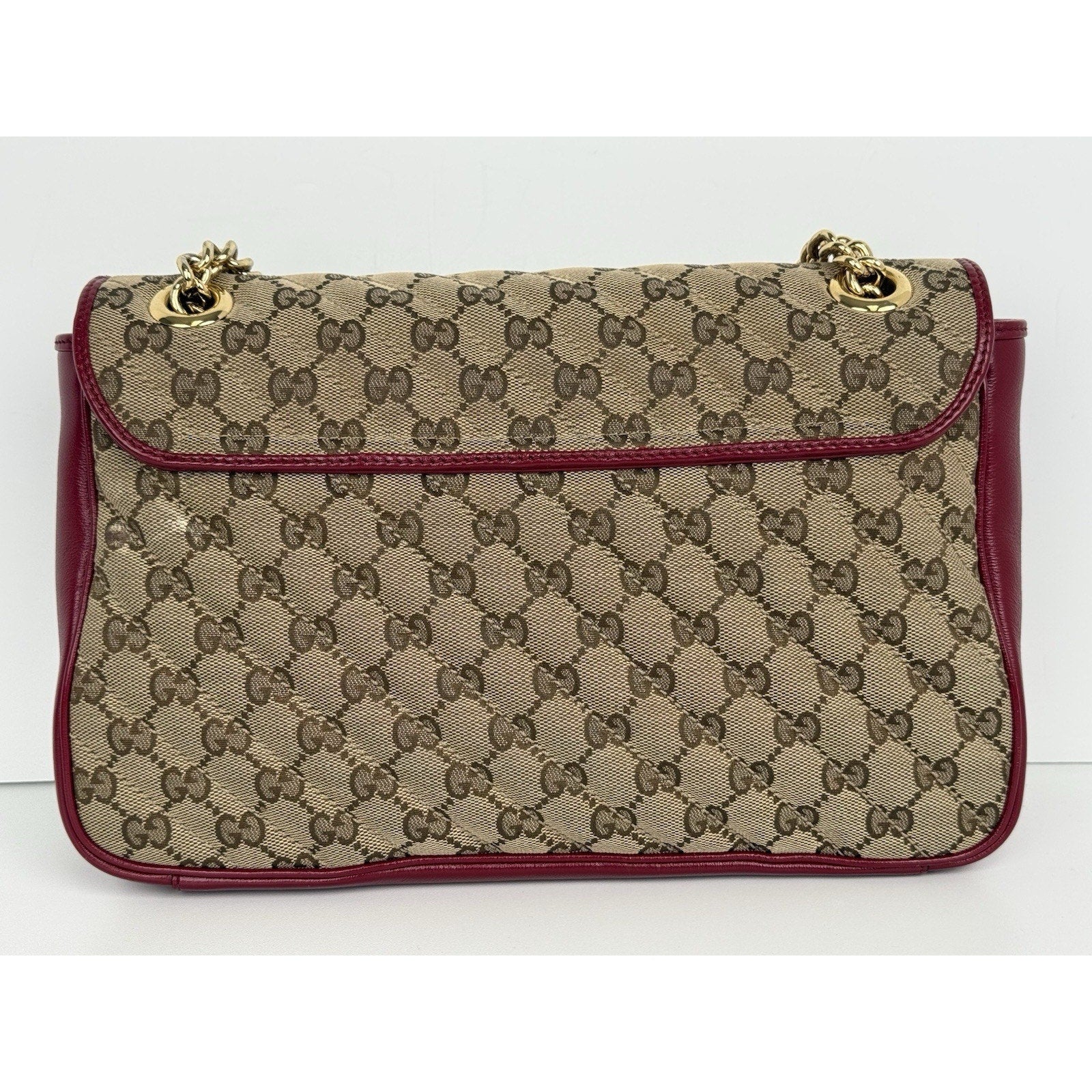 Gucci GG Marmont Monogram Matelassé Diagonal Shoulder Bag Beige and Red