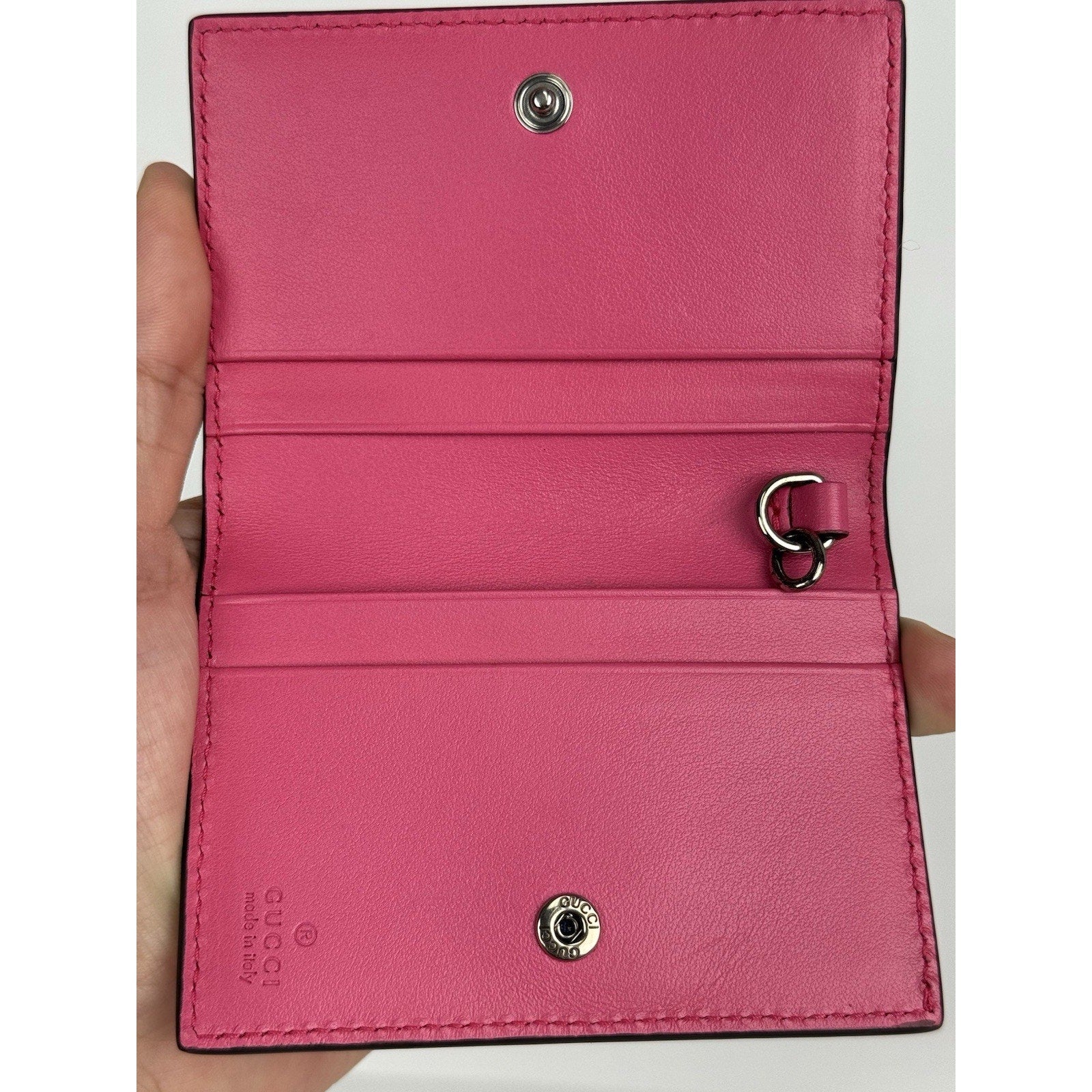 Gucci GG Perforated Leather Card Case in Pink C-1