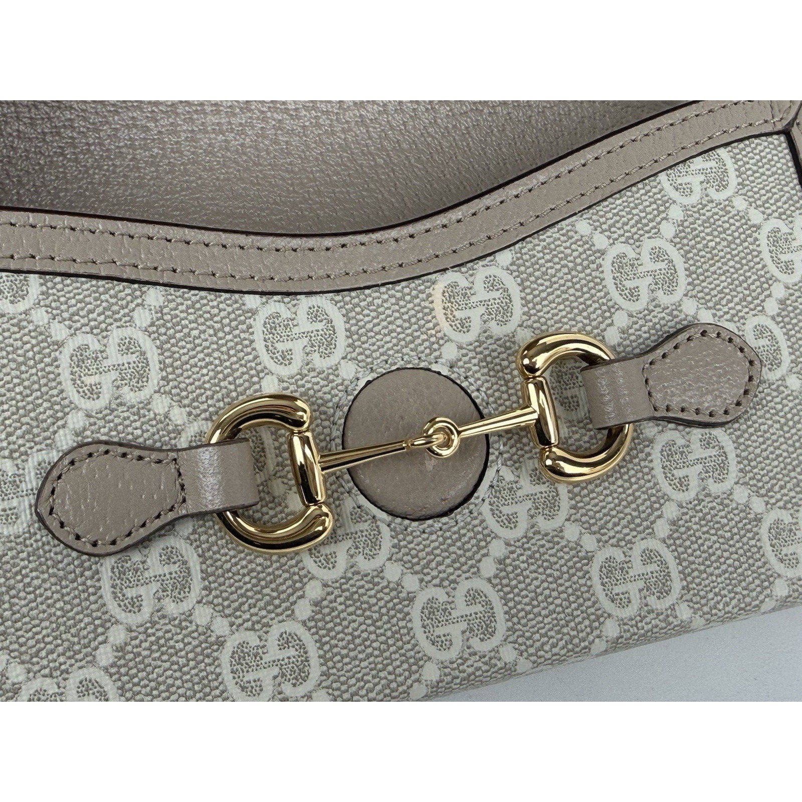 • Exterior condition: Beige GG Supreme canvas with calfskin trim is pristine, with no visible scratches, scuffs, or stains. Hardware is radiant and well preserved.