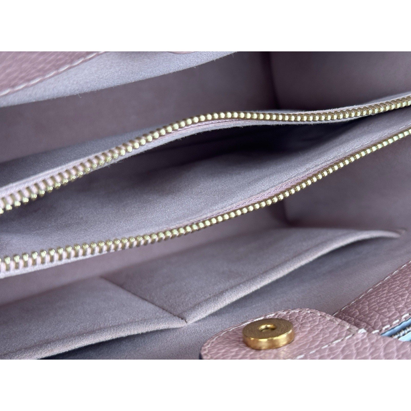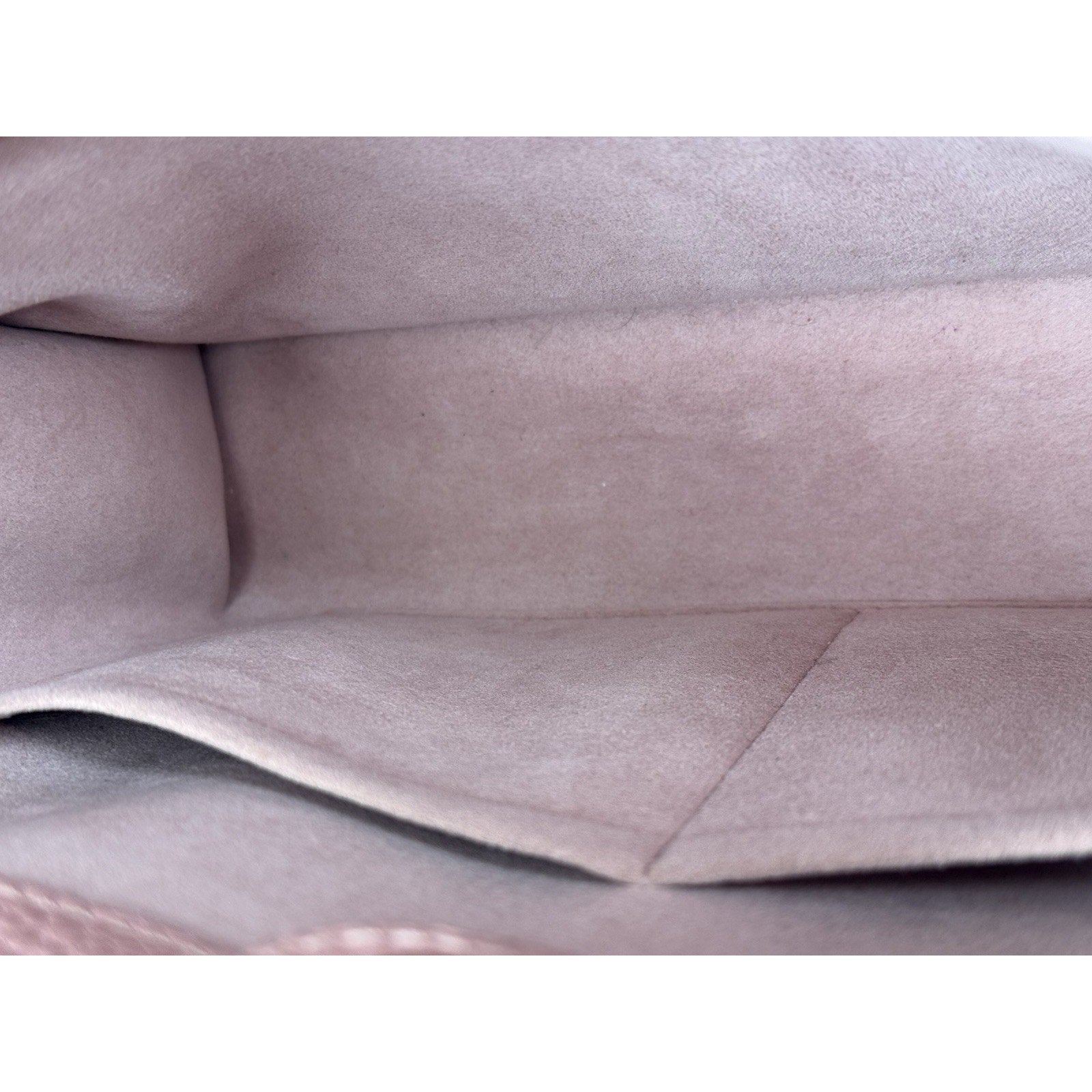 Interior Condition: The interior is lined with soft pink suede, showing minor stains in a few areas, but overall it remains clean and well kept.