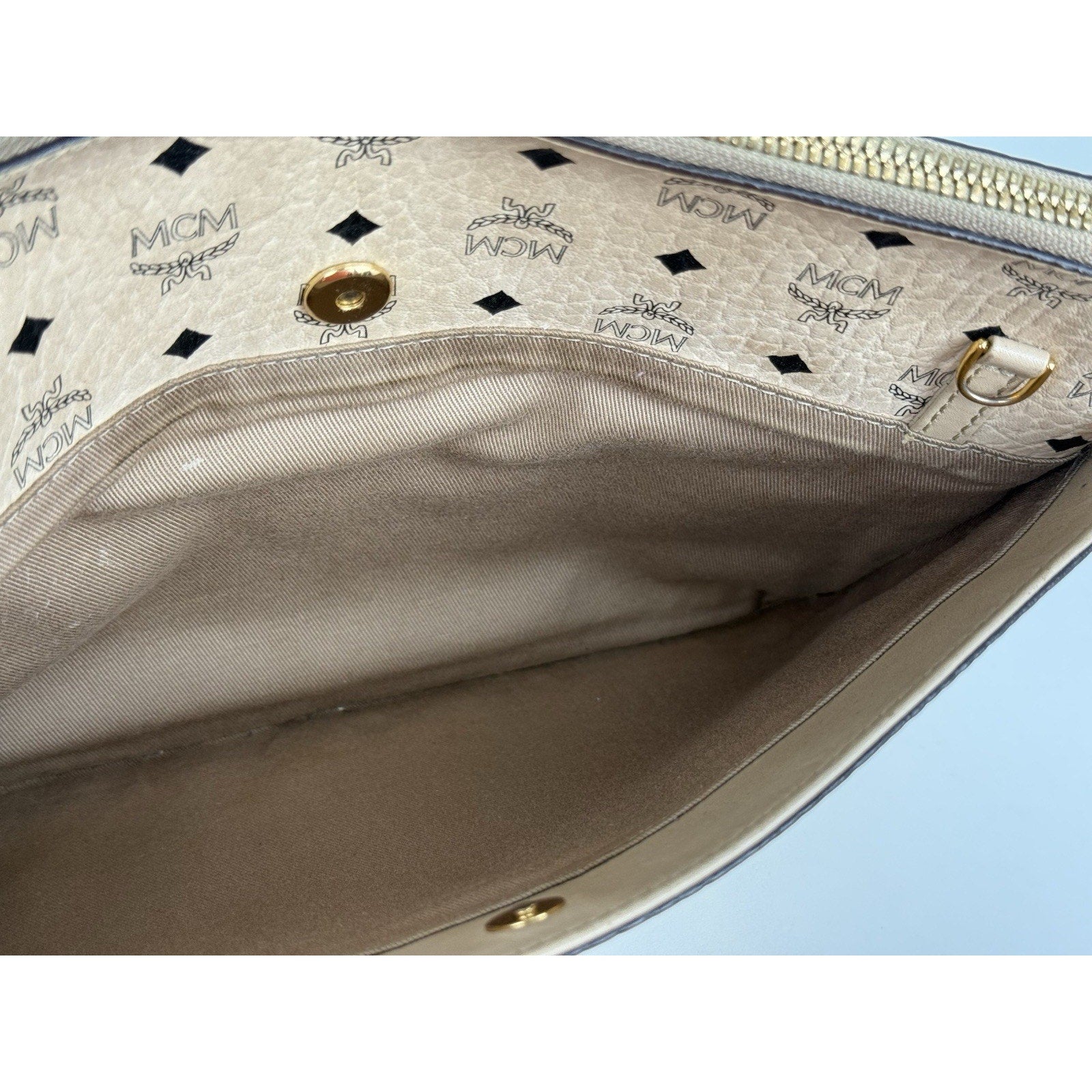 The MCM Medium Rabbit Crossbody Pouch in Visetos Beige combines practical design with luxury detailing. Crafted from signature Visetos coated canvas, it features a top zip closure and a front pocket with a magnetic snap for additional storage.