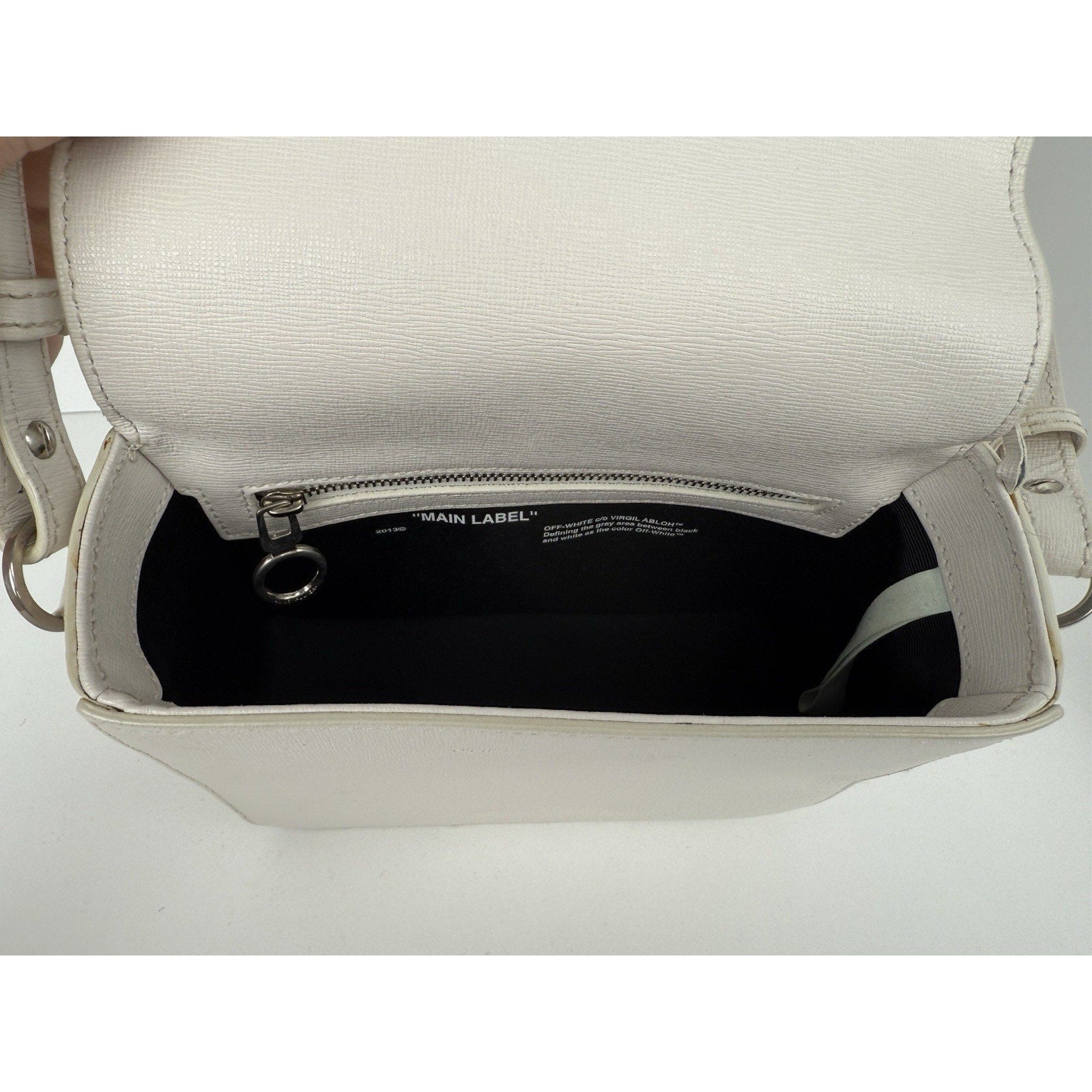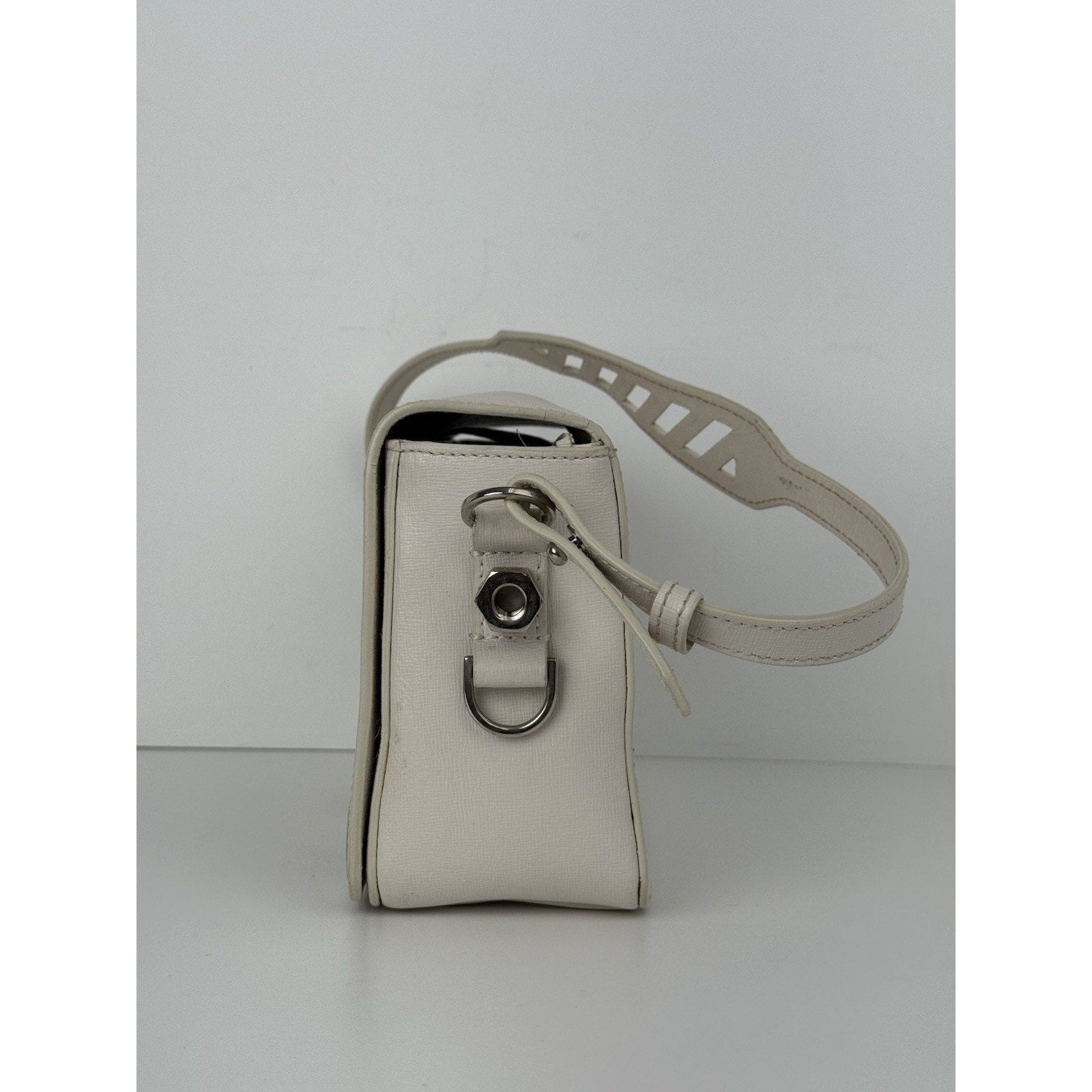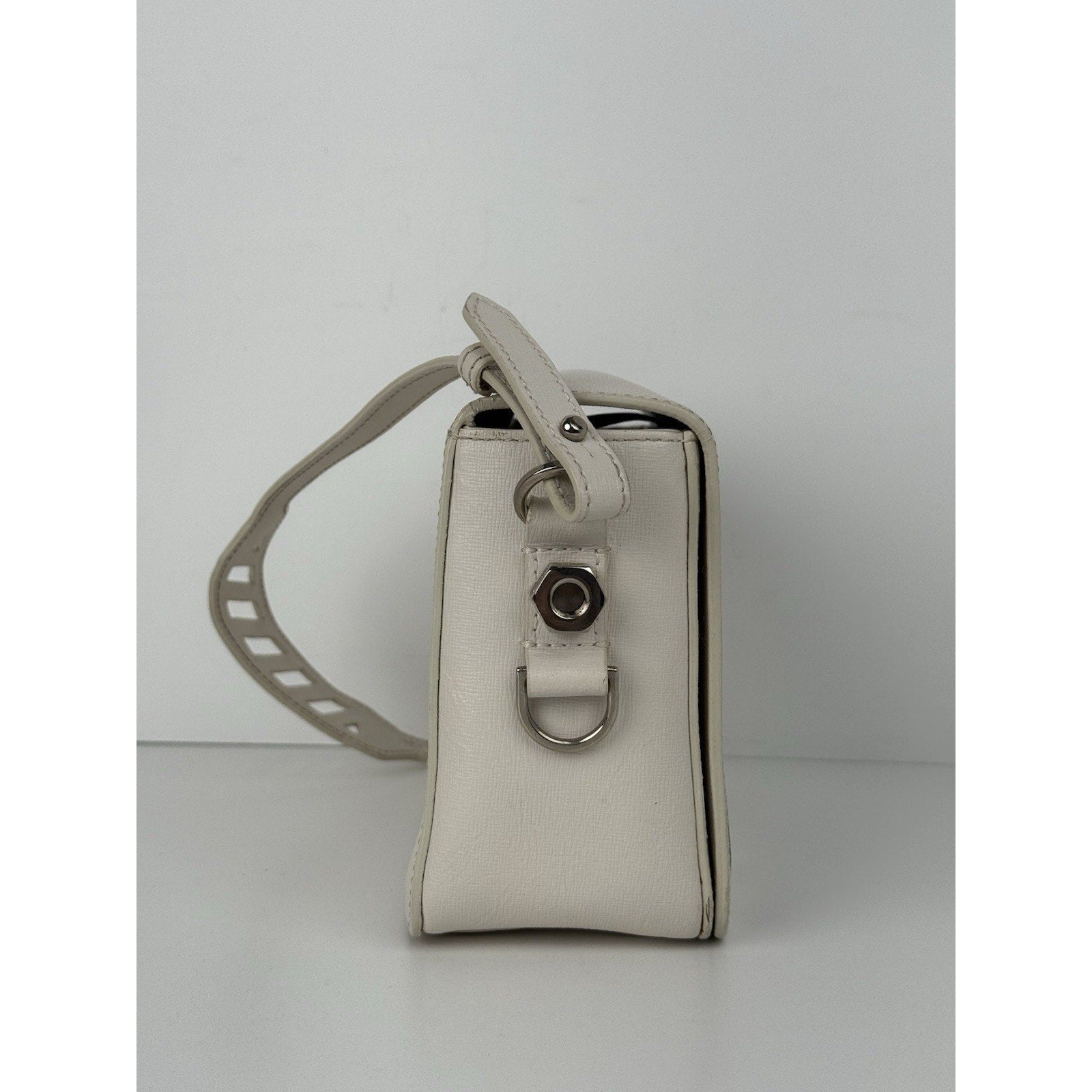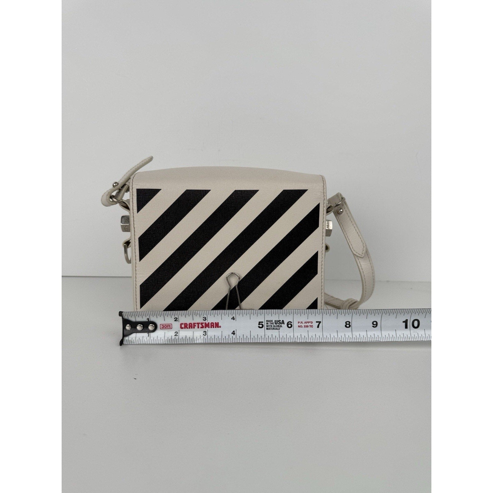 Off-White Diagonal Stripe Binder Clip Shoulder Bag White Leather with Silver