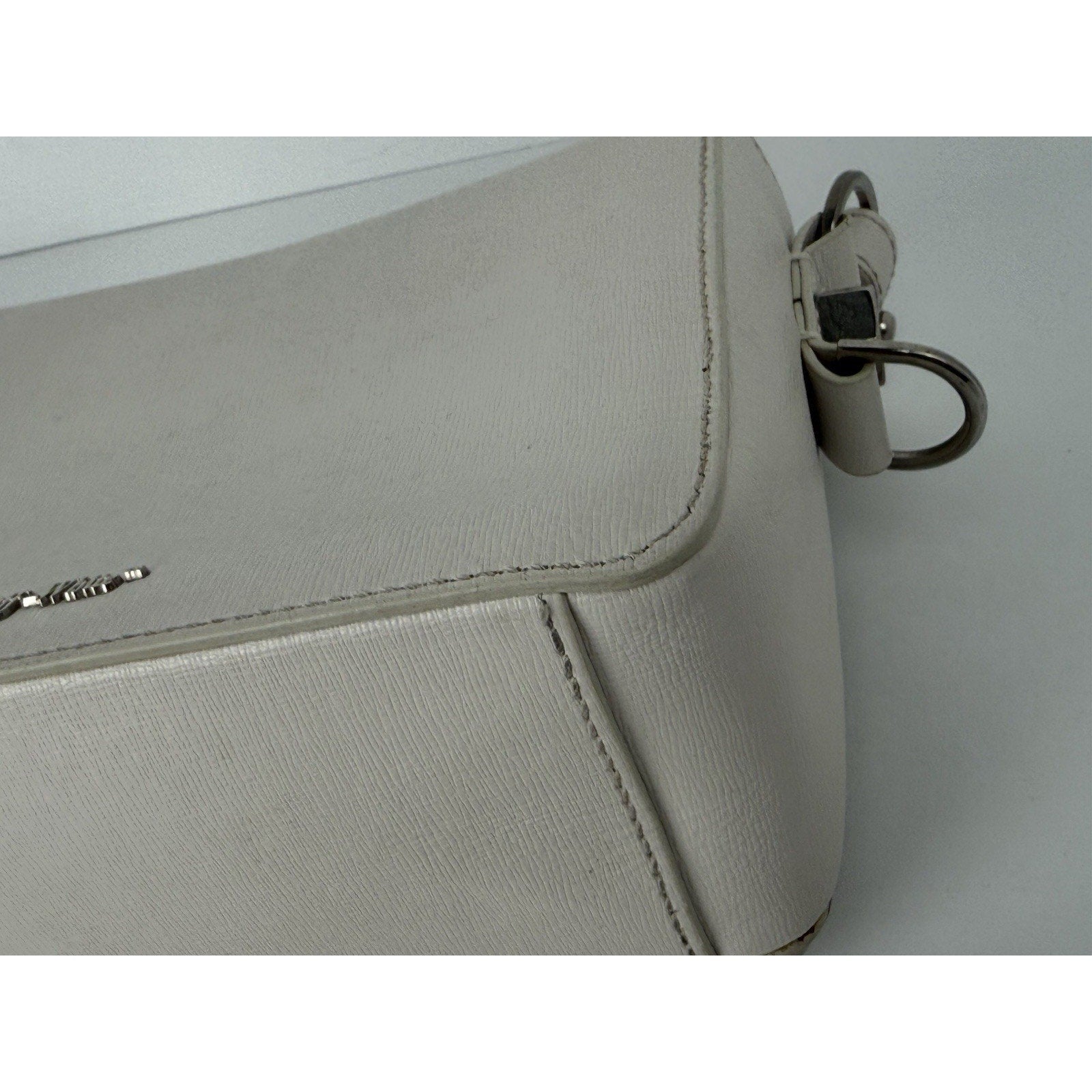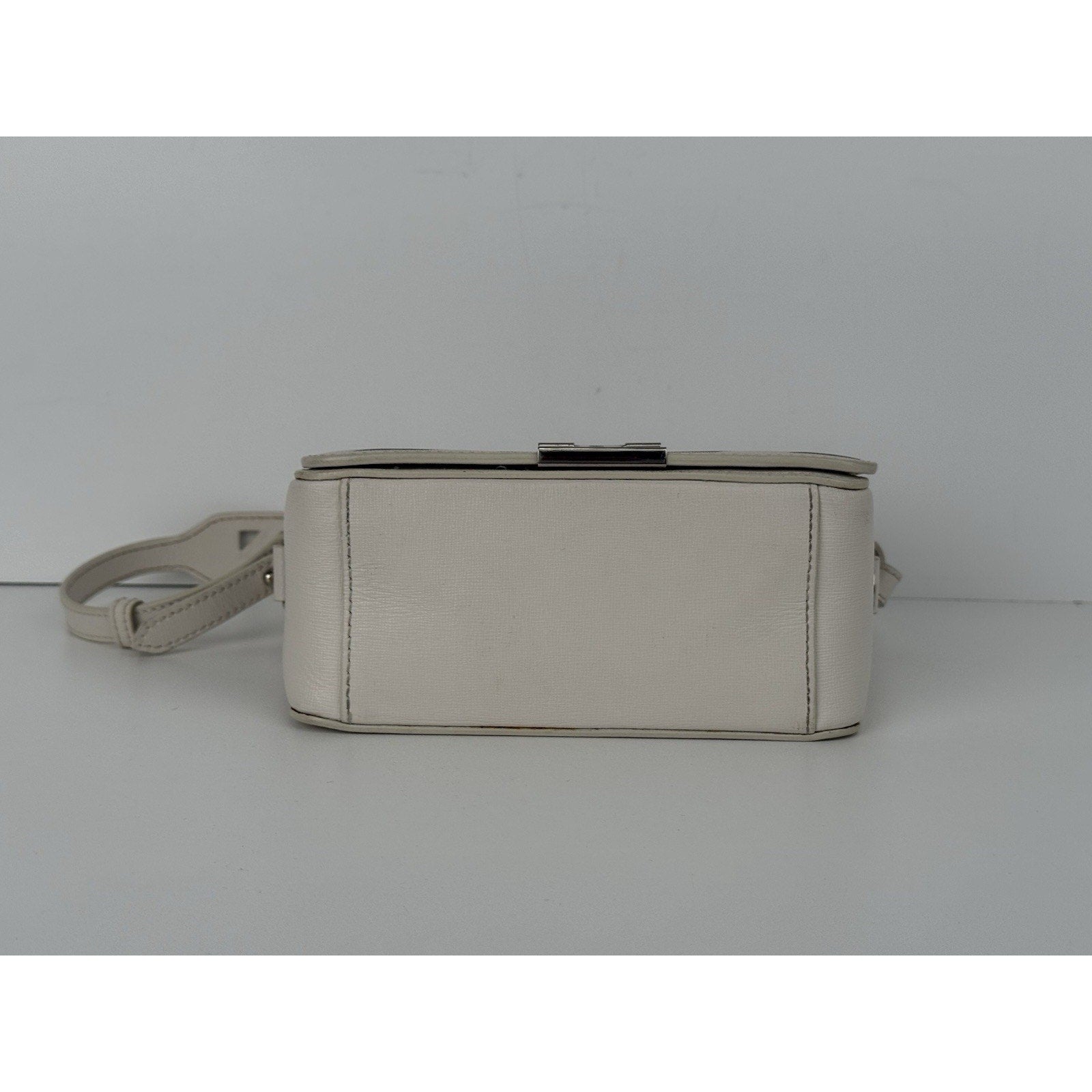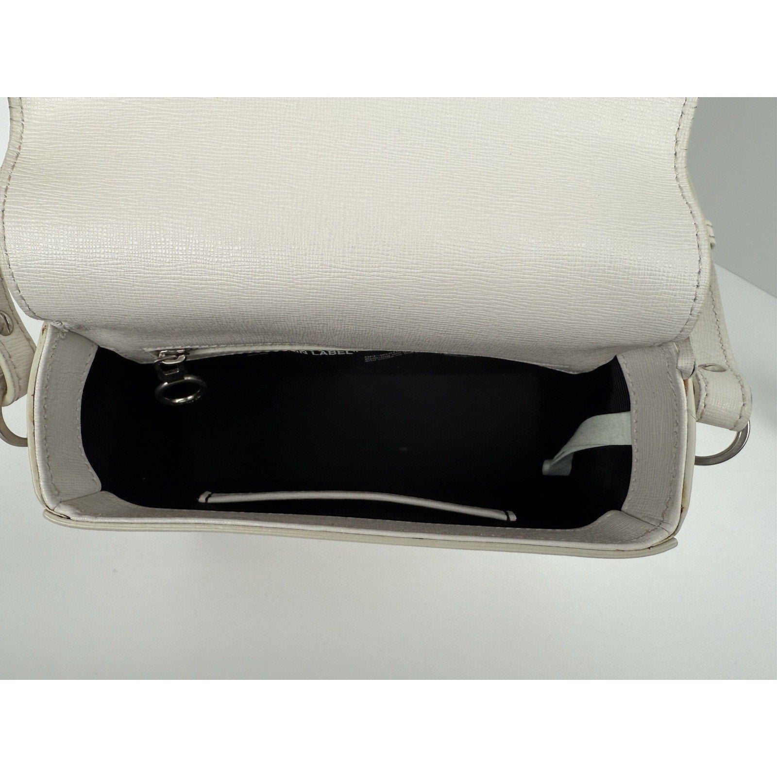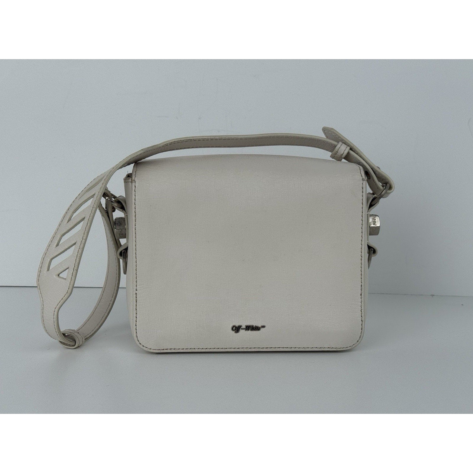 Off-White Diagonal Stripe Binder Clip Shoulder Bag White Leather with Silver