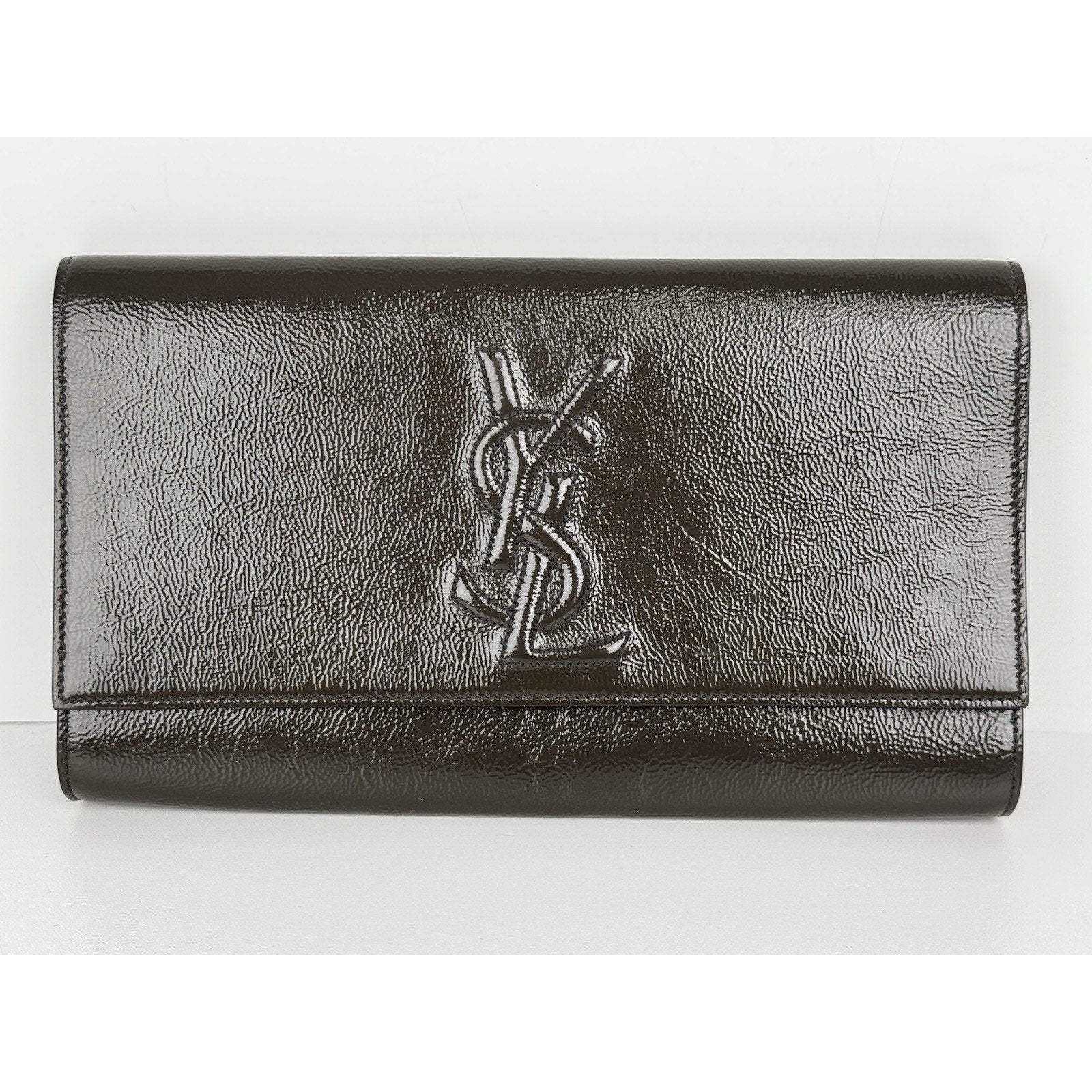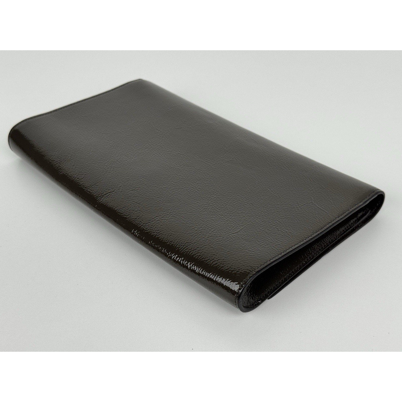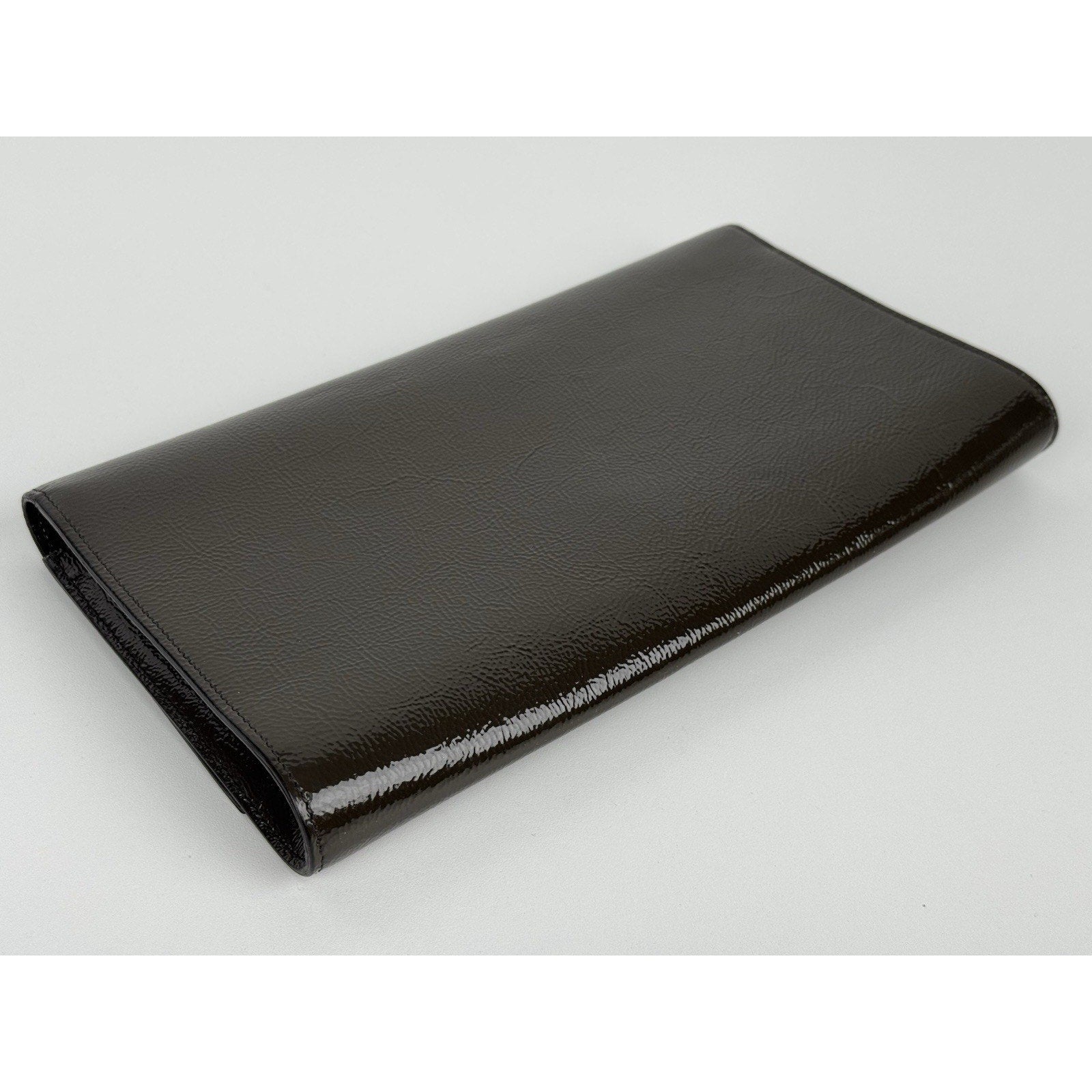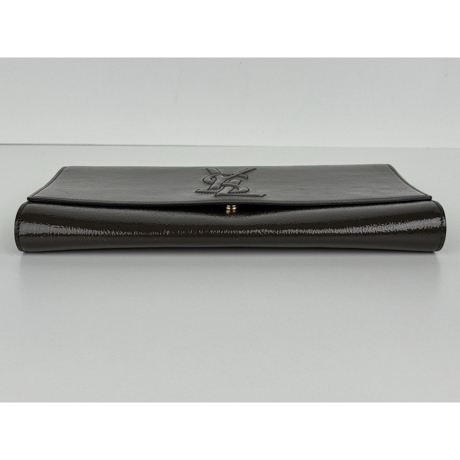 Saint Laurent Belle De Jour Patent Leather Flap Clutch Khaki w Gold Hardware C-6