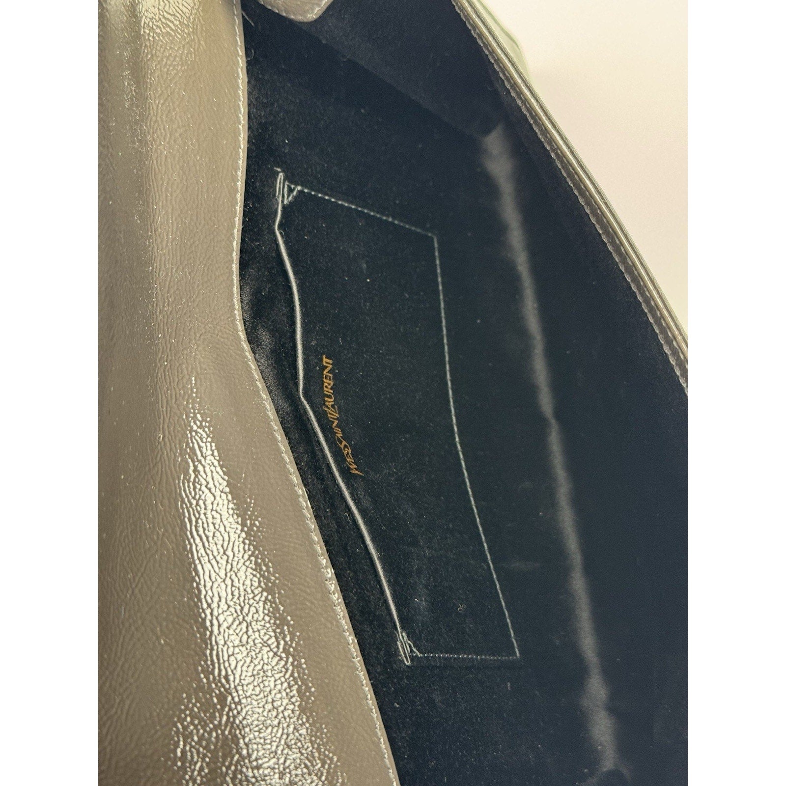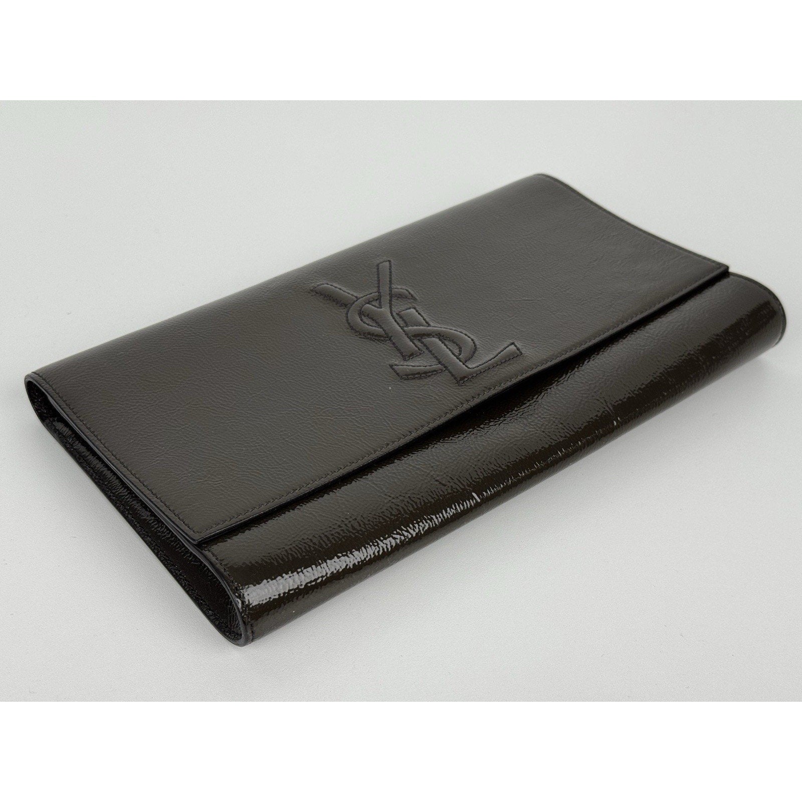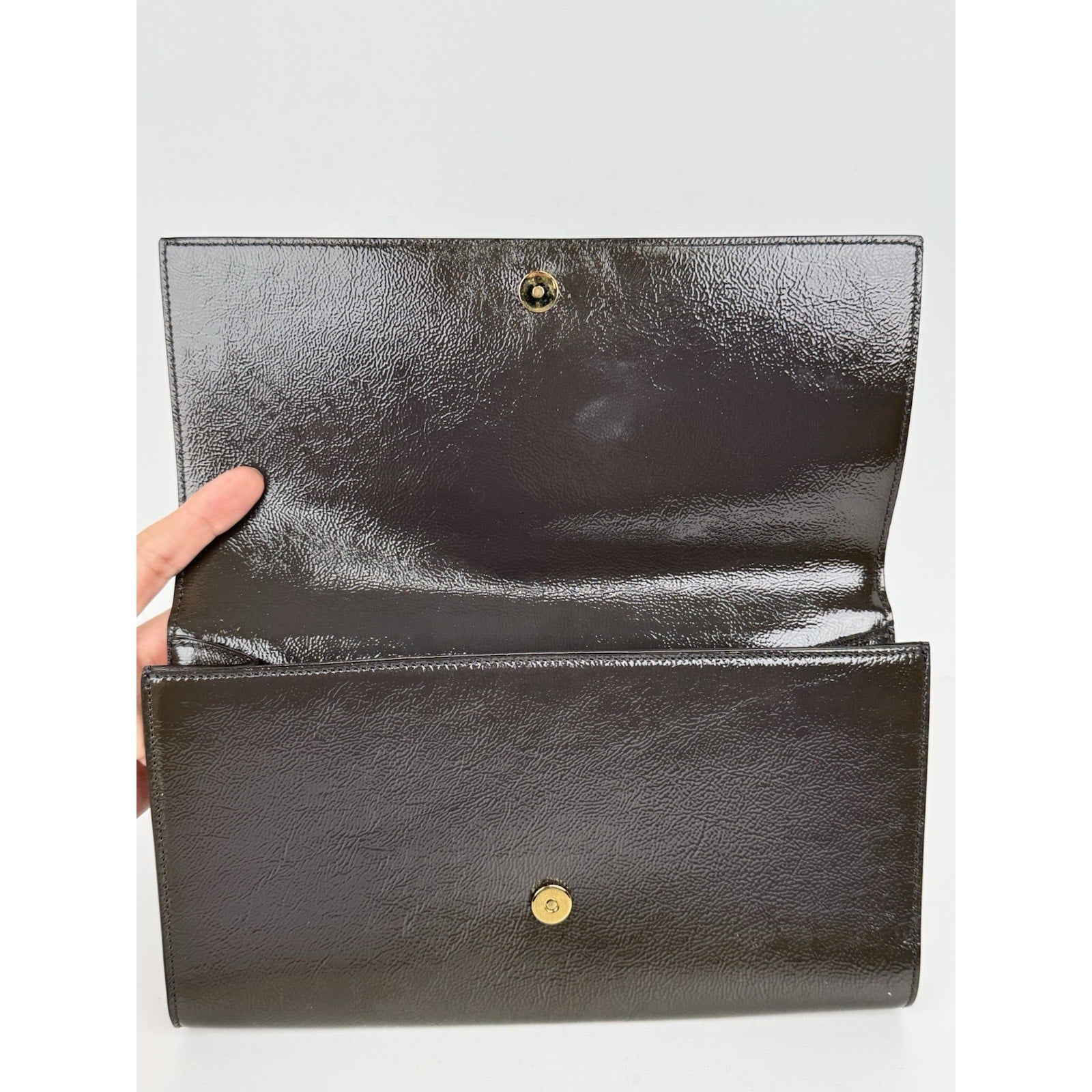 Saint Laurent Belle De Jour Patent Leather Flap Clutch Khaki w Gold Hardware C-6