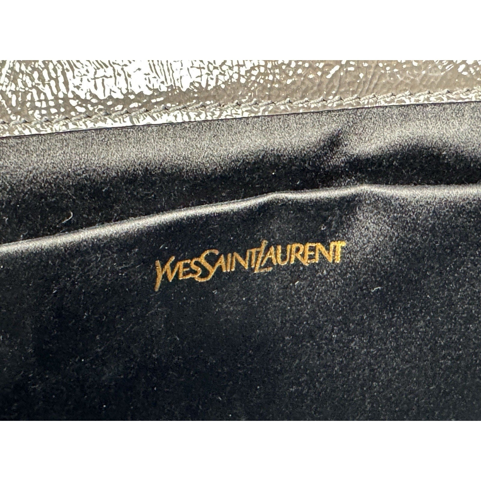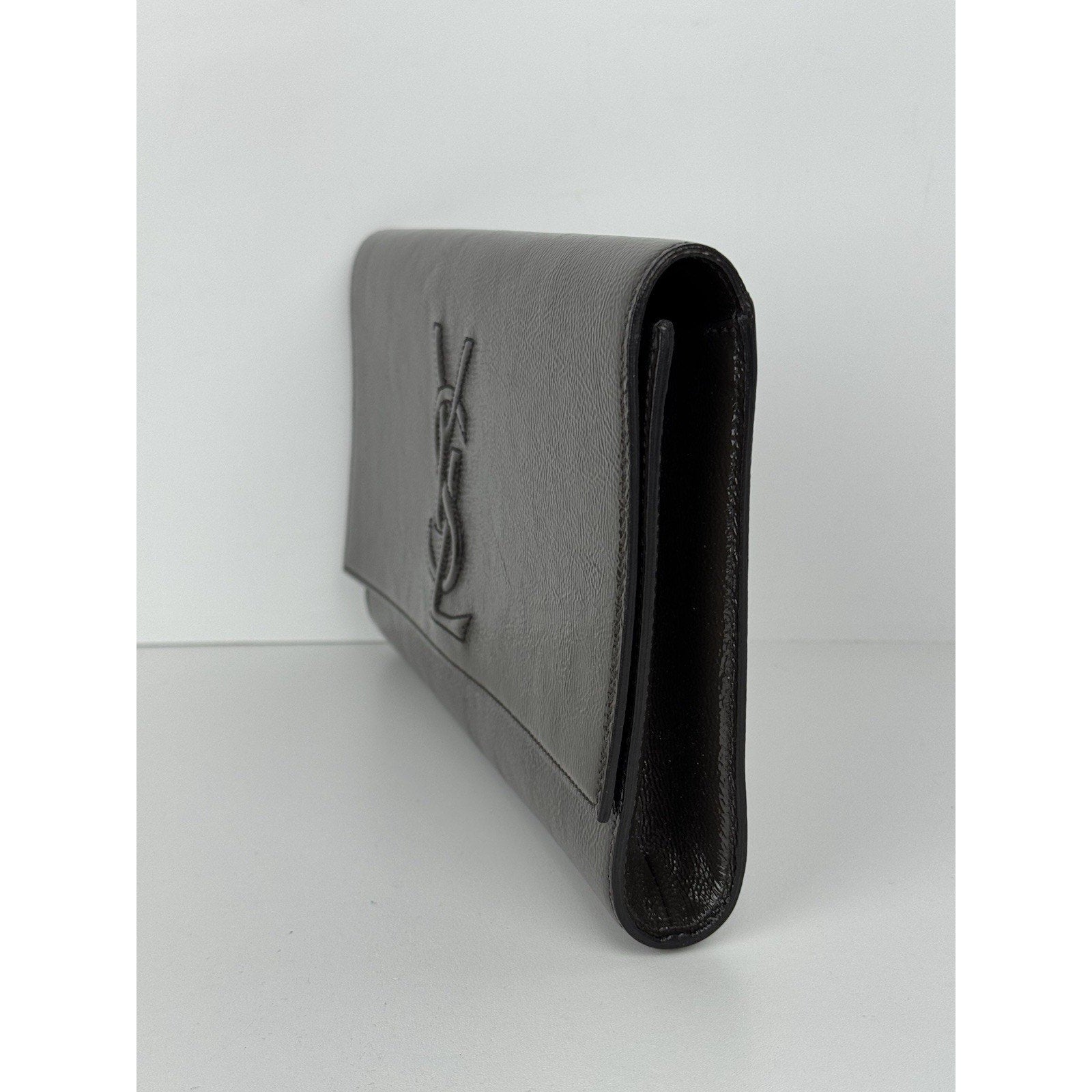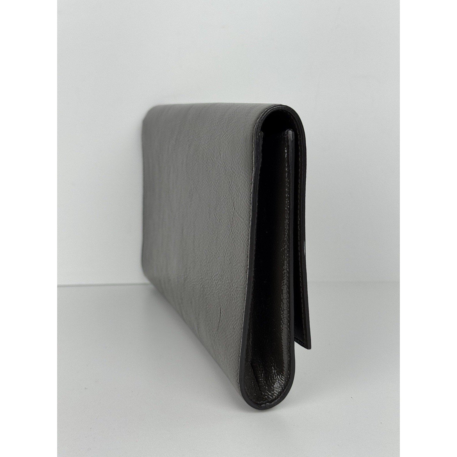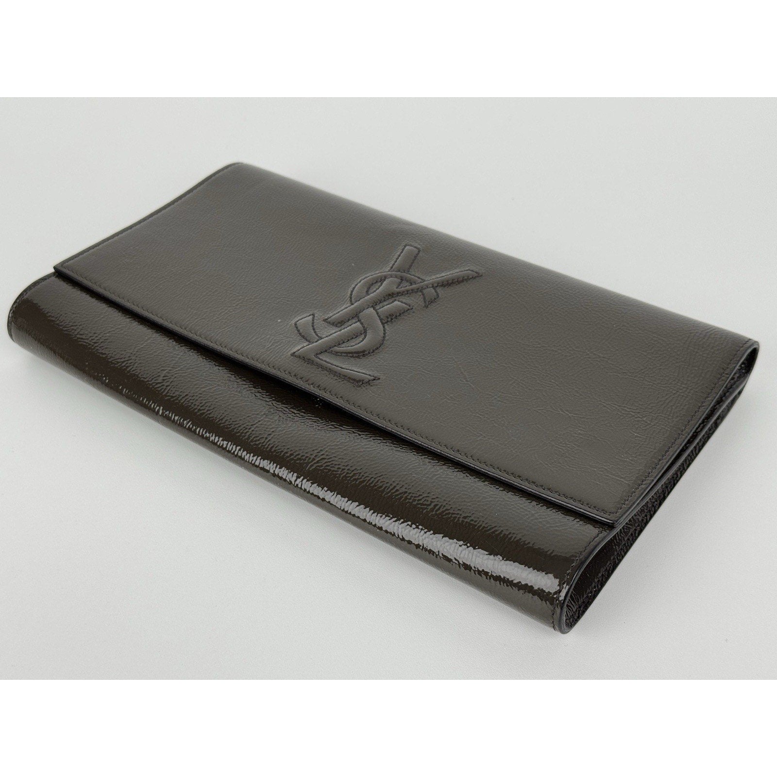 Saint Laurent Belle De Jour Patent Leather Flap Clutch Khaki w Gold Hardware C-6