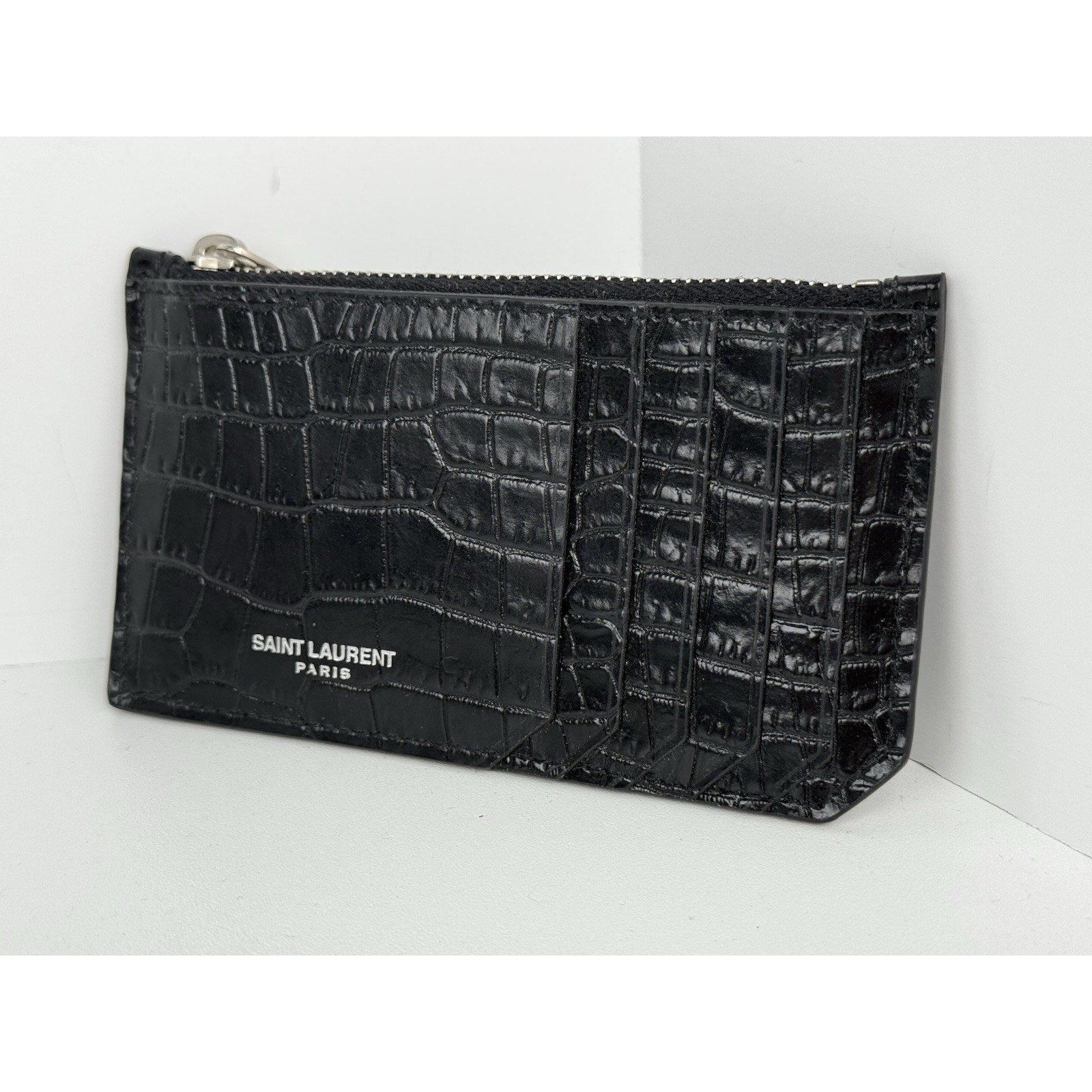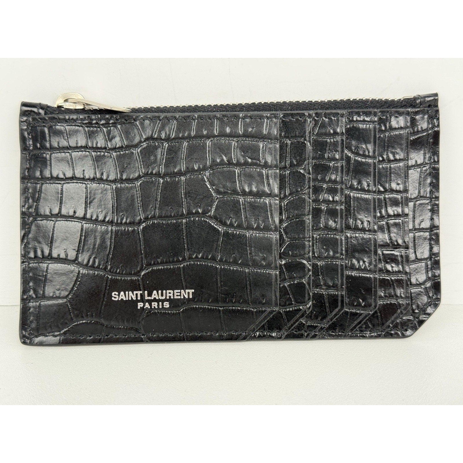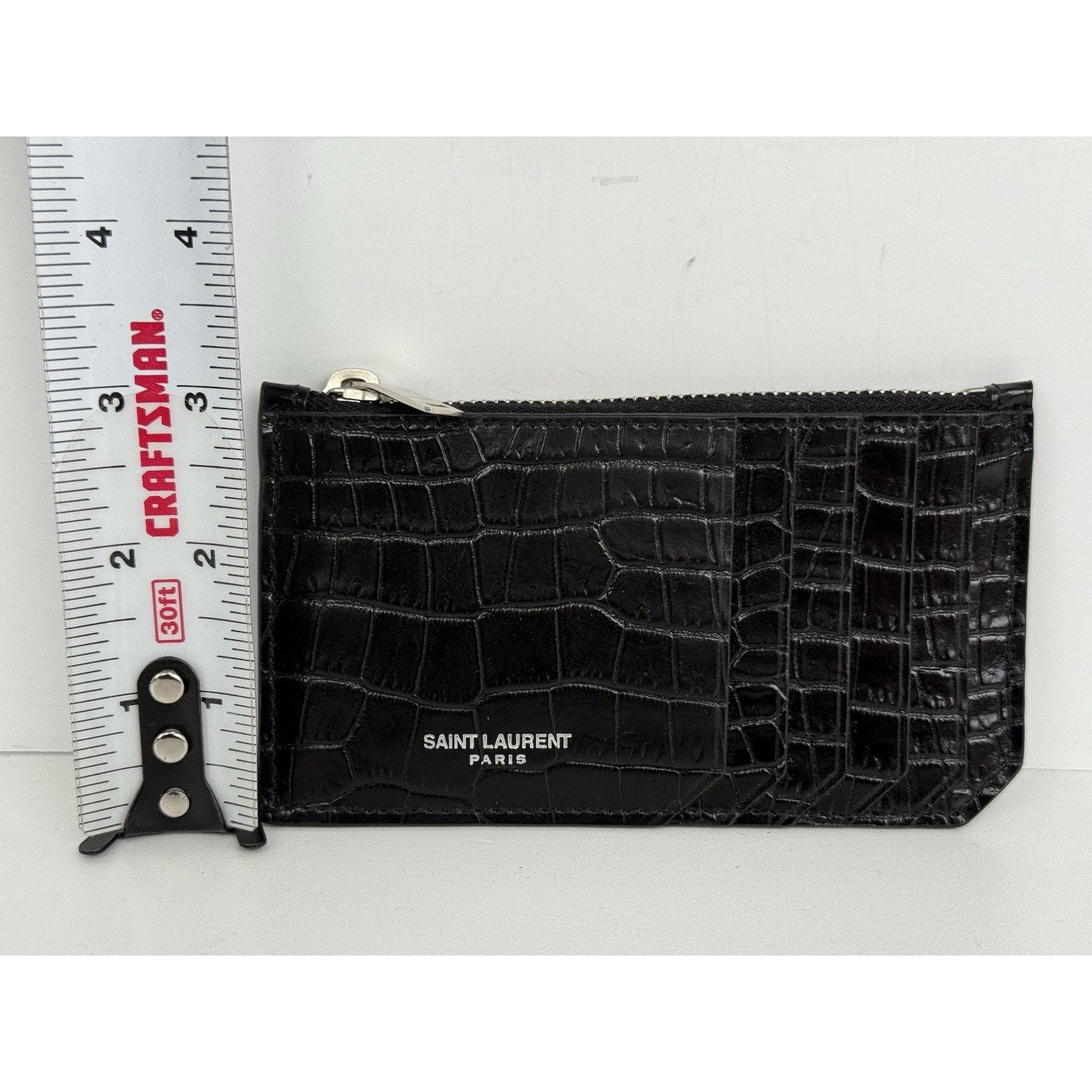 Saint Laurent Calfskin Crocodile Embossed 5 Fragments Zip Card Holder