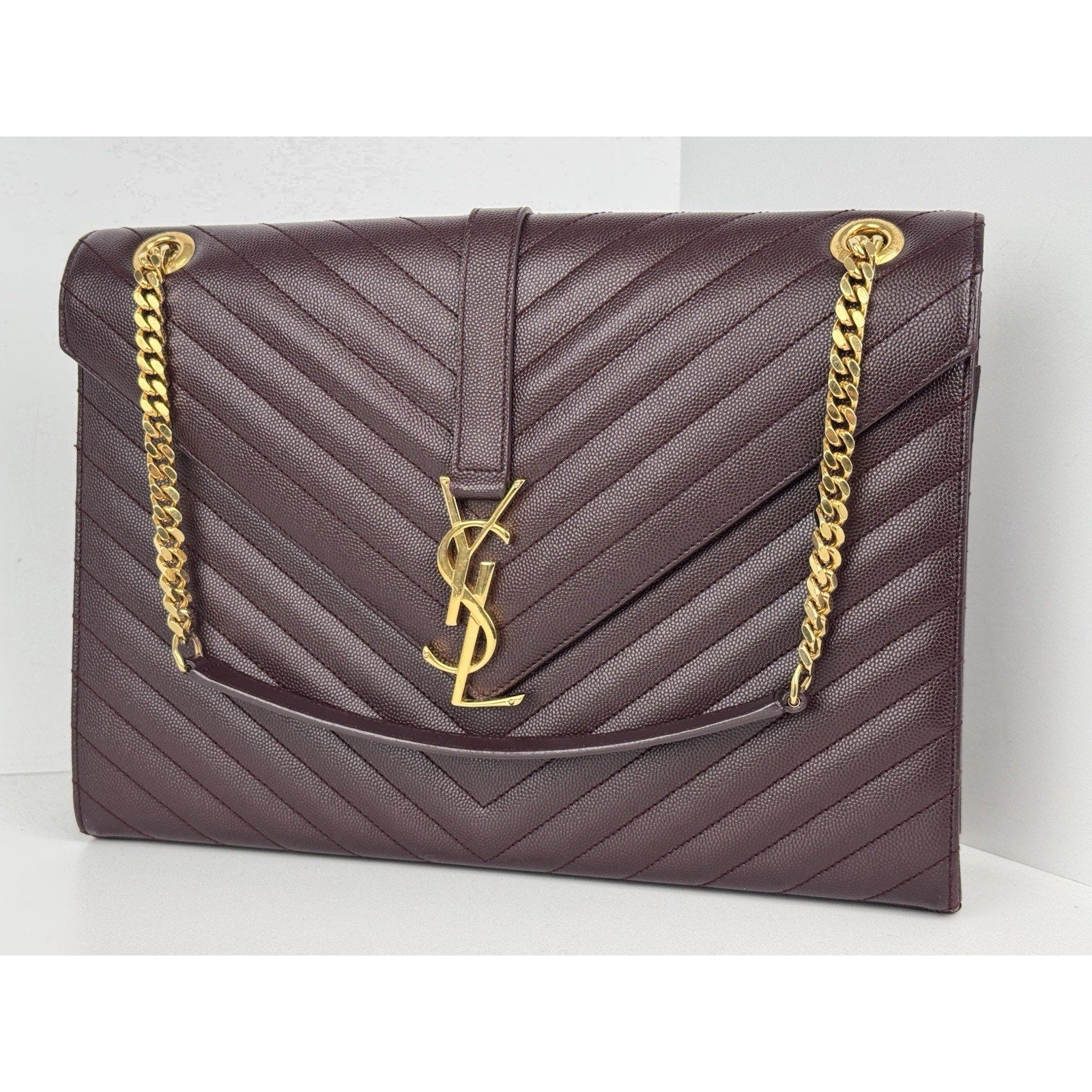 SAINT LAURENT Grain De Poudre Matelasse Chevron Large Monogram Satchel B-6