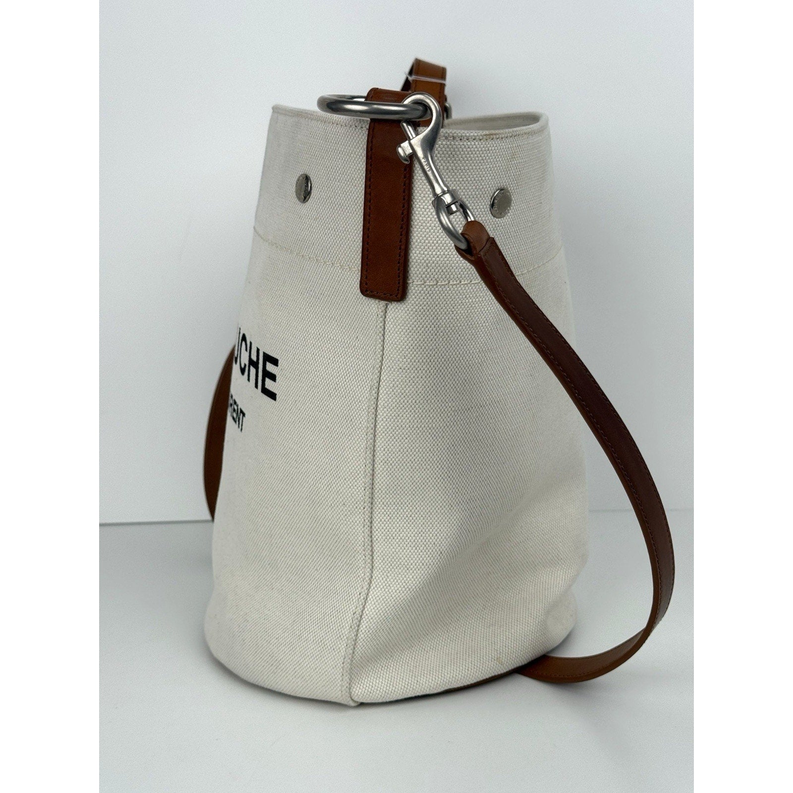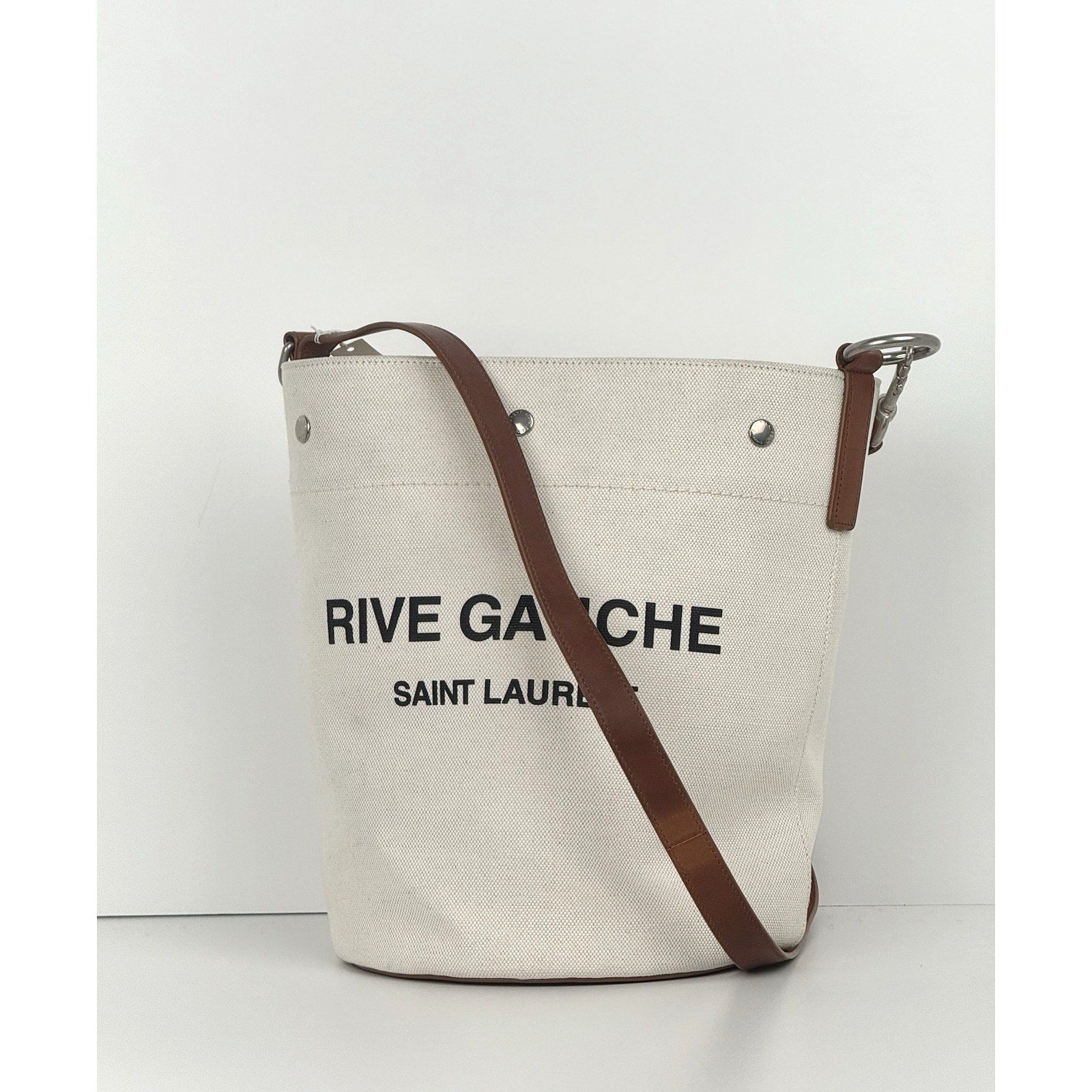 Saint Laurent Rive Gauche Linen Leather Women’s Bucket Bag in Beige