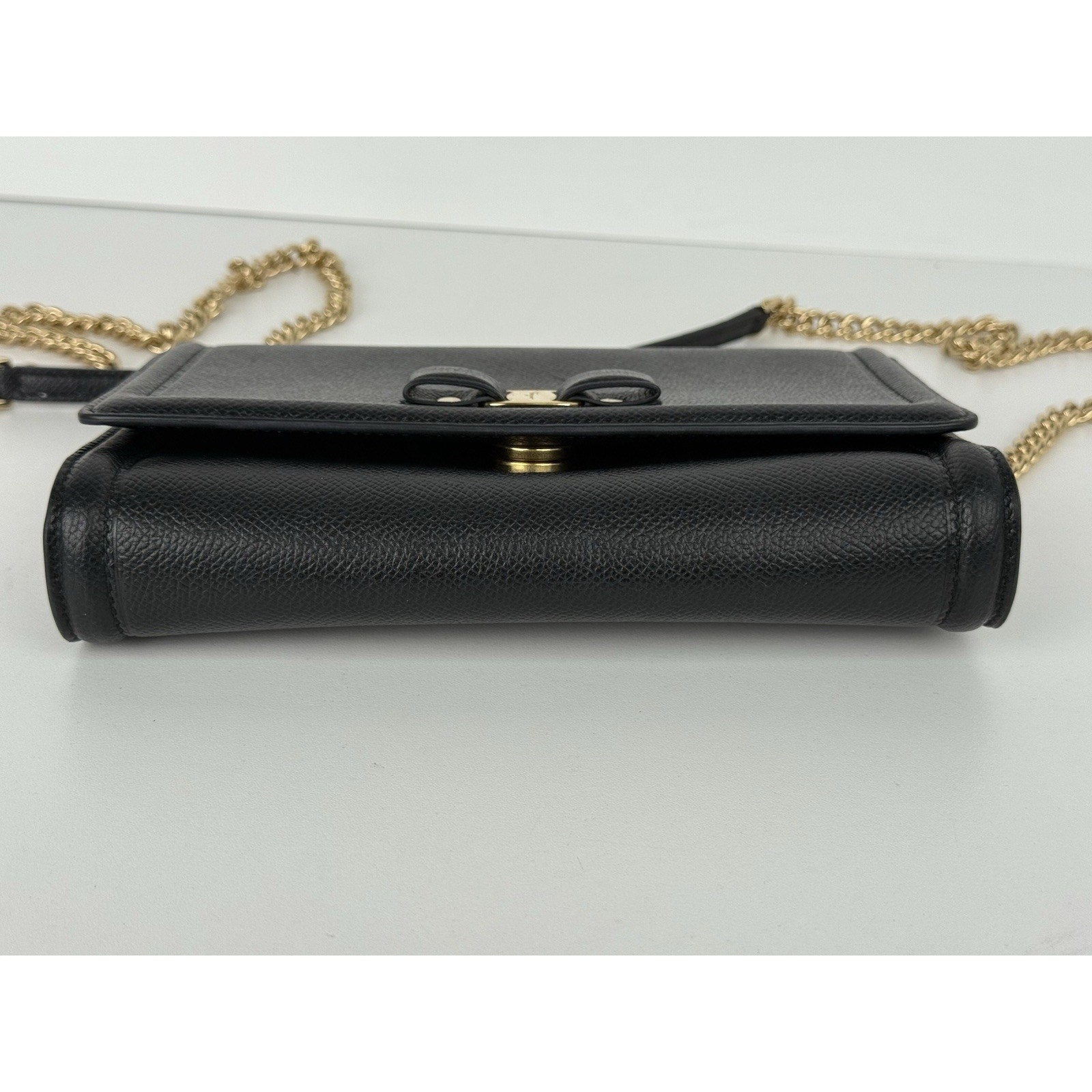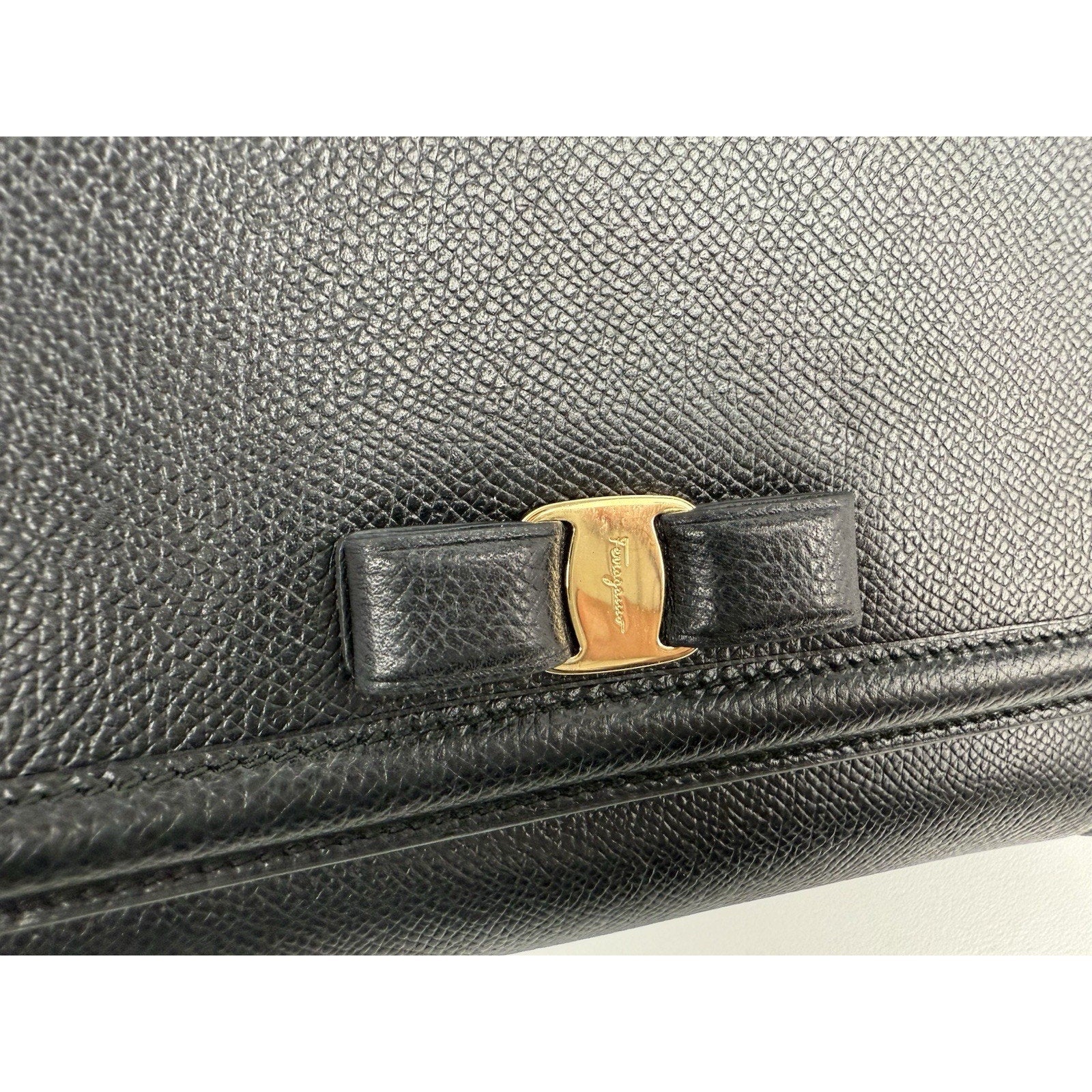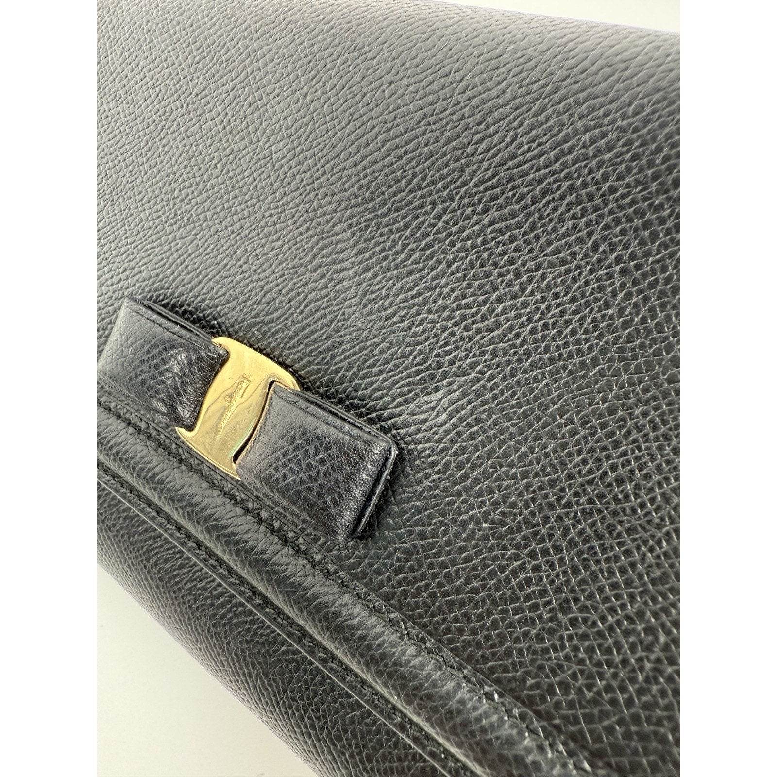 Salvatore Ferragamo Vala Ribbon Shoulder Bag Leather Black