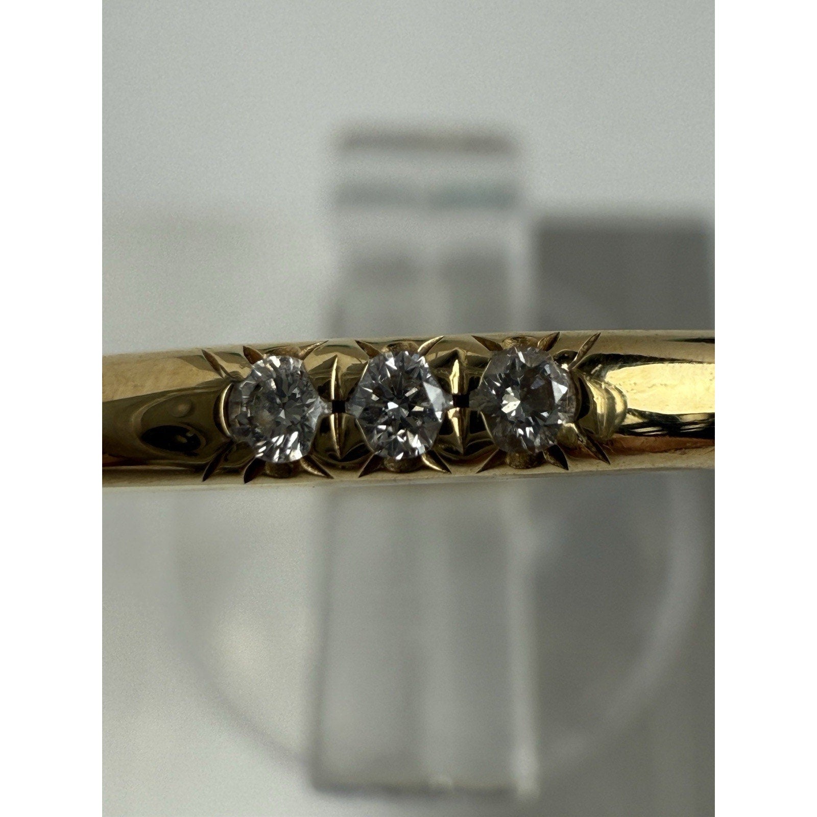 This three-stone ring features round diamonds in white/colorless with a yellow gold metal. The natural diamonds in the center are of D color grade, and the setting style is three-stone. The ring is from the Tiffany & Co. Tiffany Embrace collection and is a symbol of eternal love, making it an ideal choice for special occasions such as engagements or anniversaries. This ring is a timeless piece that exudes elegance and sophistication.