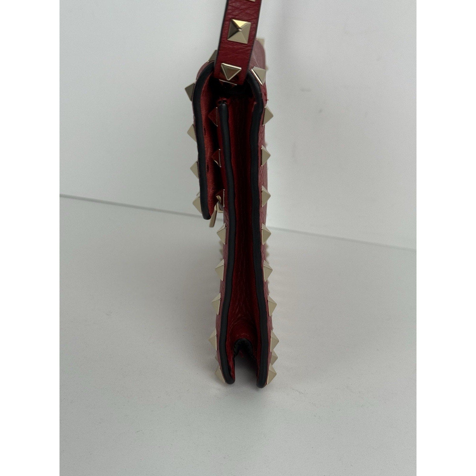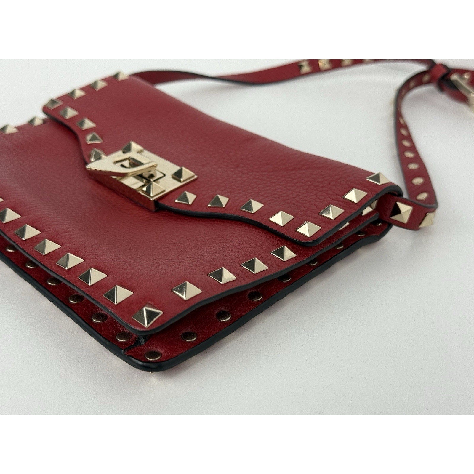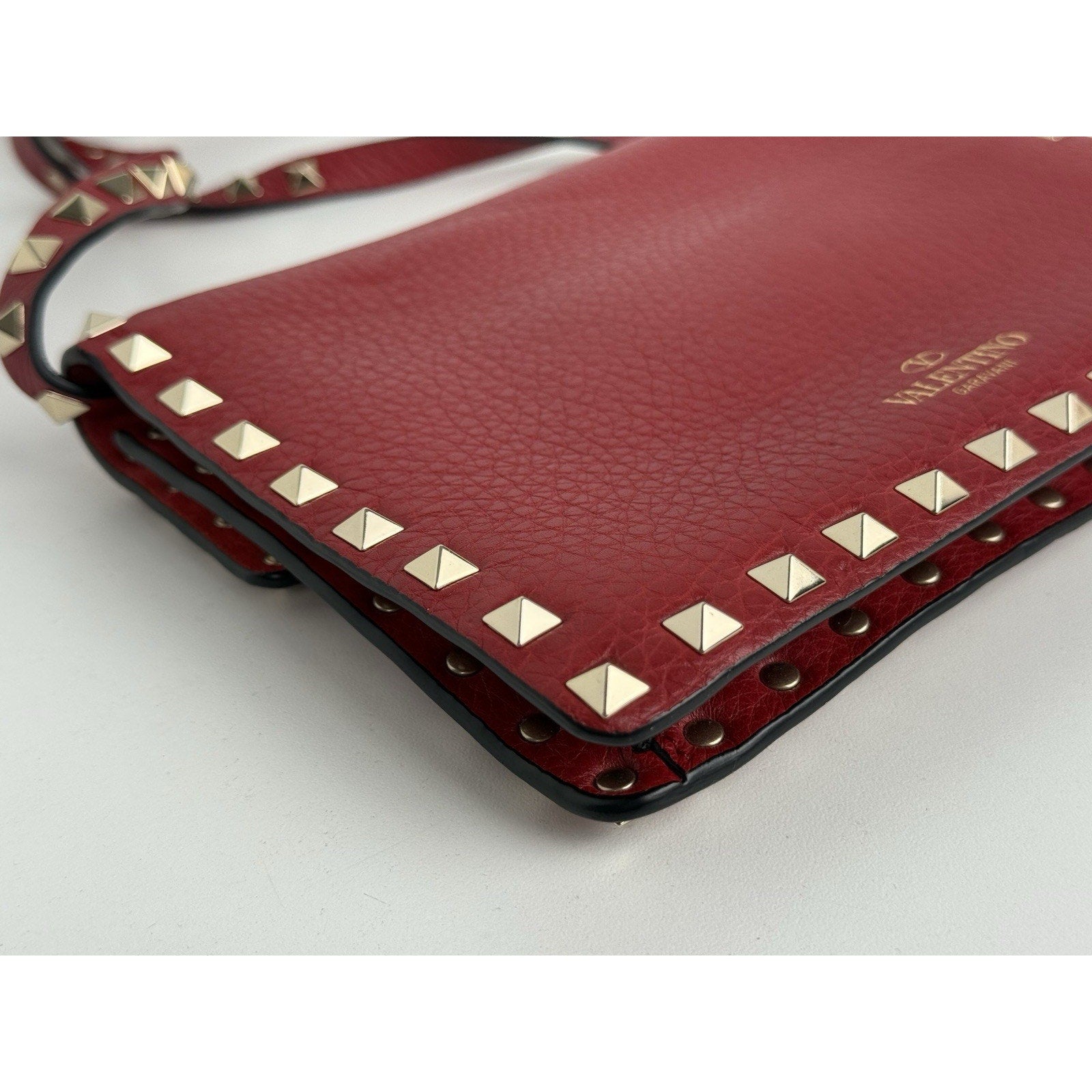VALENTINO GARAVANI Pebbled Calfskin Medium Rockstud Rouge