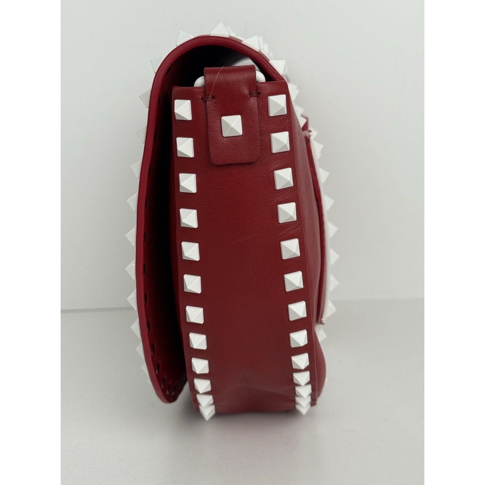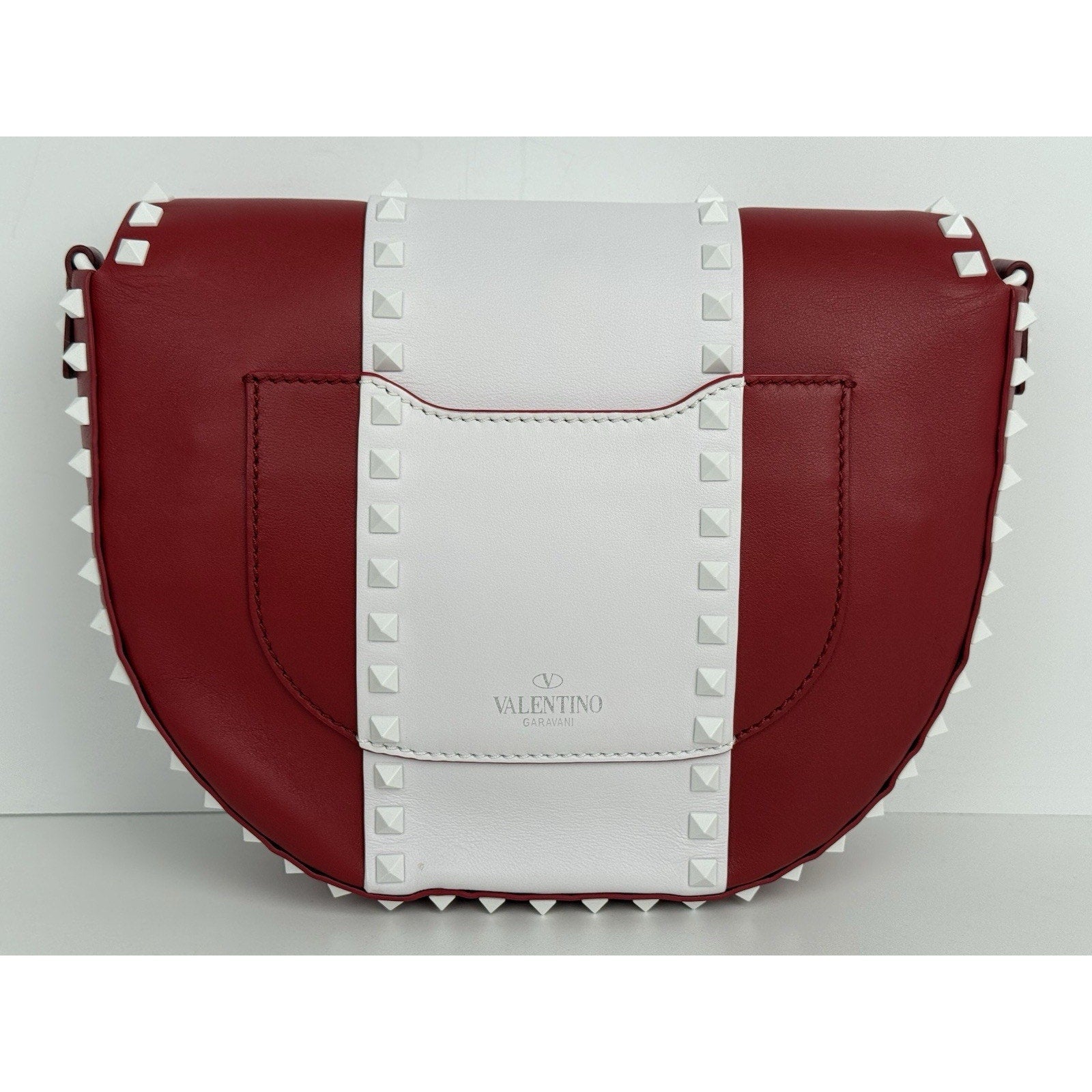 VALENTINO Red White Leather Rockstud Saddle Crossbody Bag