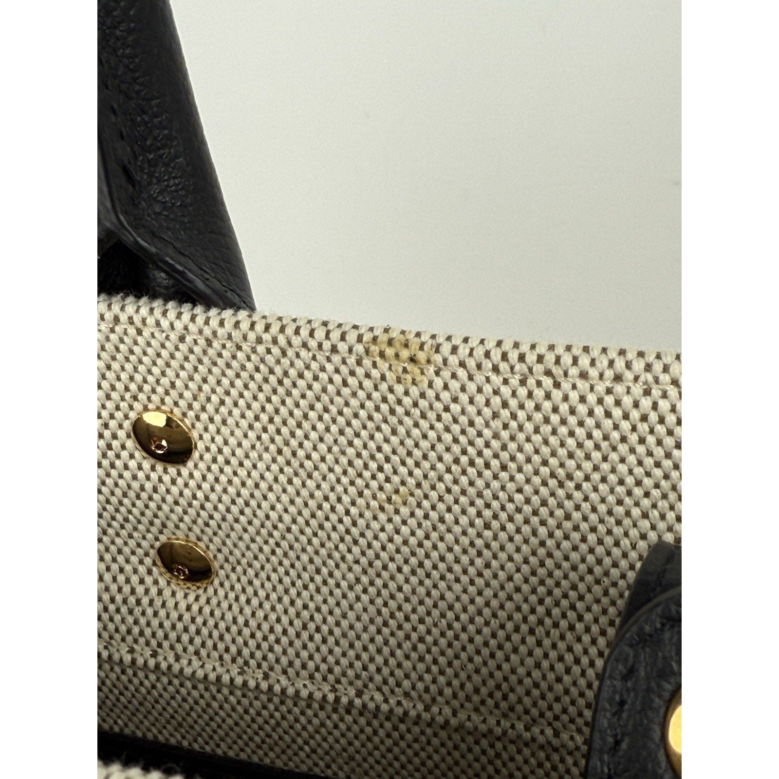 Exterior condition: Stains and residue on the canvas. scratches on the leather and hardware.